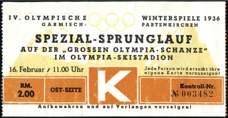 40354   imageTickets: Opening ceremony ticket, Feb 6th, with overprint “Kraft Durch Freudeu-Sonderpreis”, some creases