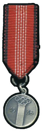 40401   imageMiniature 2nd Class Olympic Order stick-pin, made in the 1950s without the Eagle and Swastika to be worn on evening attire, gilt and enamelled, very fine and scarce