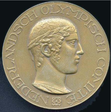 40395   imageca.1936 Dutch Olympic Committee merit medal, bronze, 60mm, showing ancient Greek’s head with legend on both sides, very fine