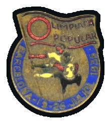 40609   imagePeople’s Olympiad in Barcelona 1936 pin, 16x19mm, broze with enamel, showing European, African and Asian athletes holding a single flag. The Republicans in Spain planned on holding an international People’s Olympiad 2 weeks before Berlin in protest of the Nazi racist ideas. The begining coincided with the outbreak of Spanish Civil War and the games were cancelled.