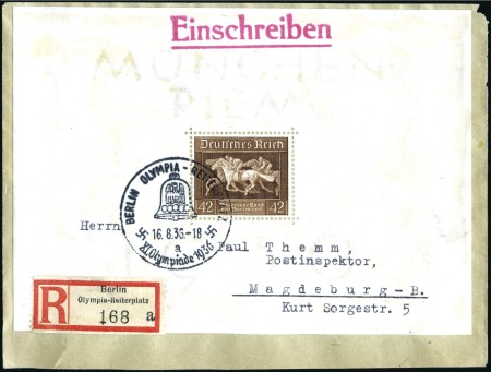 40594   imageAdded to 115398 Three registered covers with Olympic franking & tied by Stadion, Regattabahn & Reiterplatz Bell cancels, each with special Olympic registered label, very fine & csrace