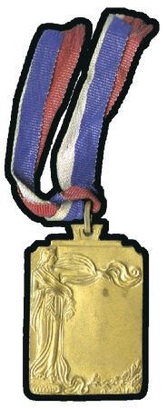 40618   image1939 Military Olympiad, Santiago, gilt medal showing robed female holding wreath crown, reverse with legend, very fine