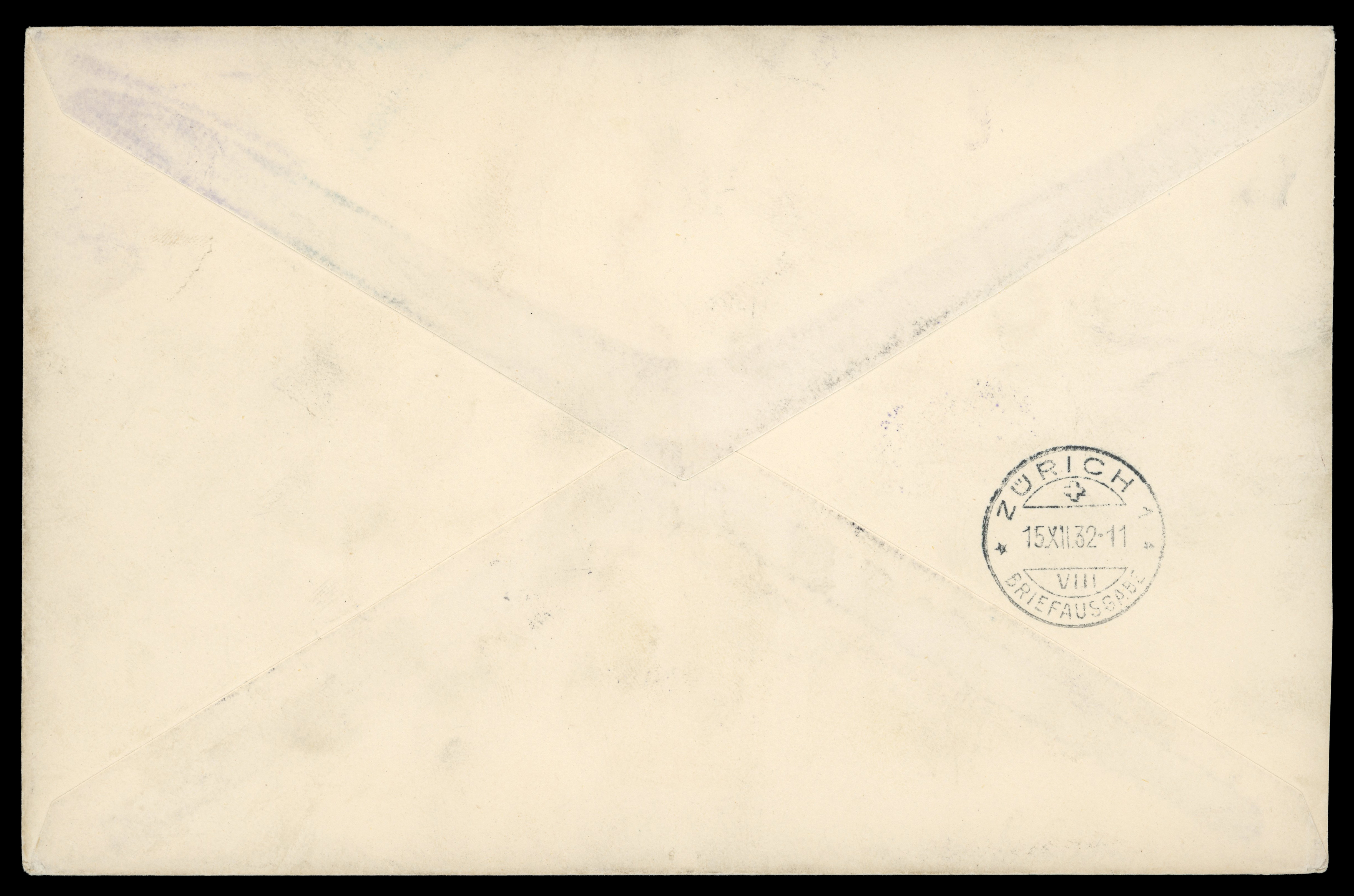 1932 Piccard and Cosyns Second Expedition flight to the Stratosphere, so called "Kipfer-cover" with his signature, with complete set of 3 Belgium to Zürich. (Image 1)