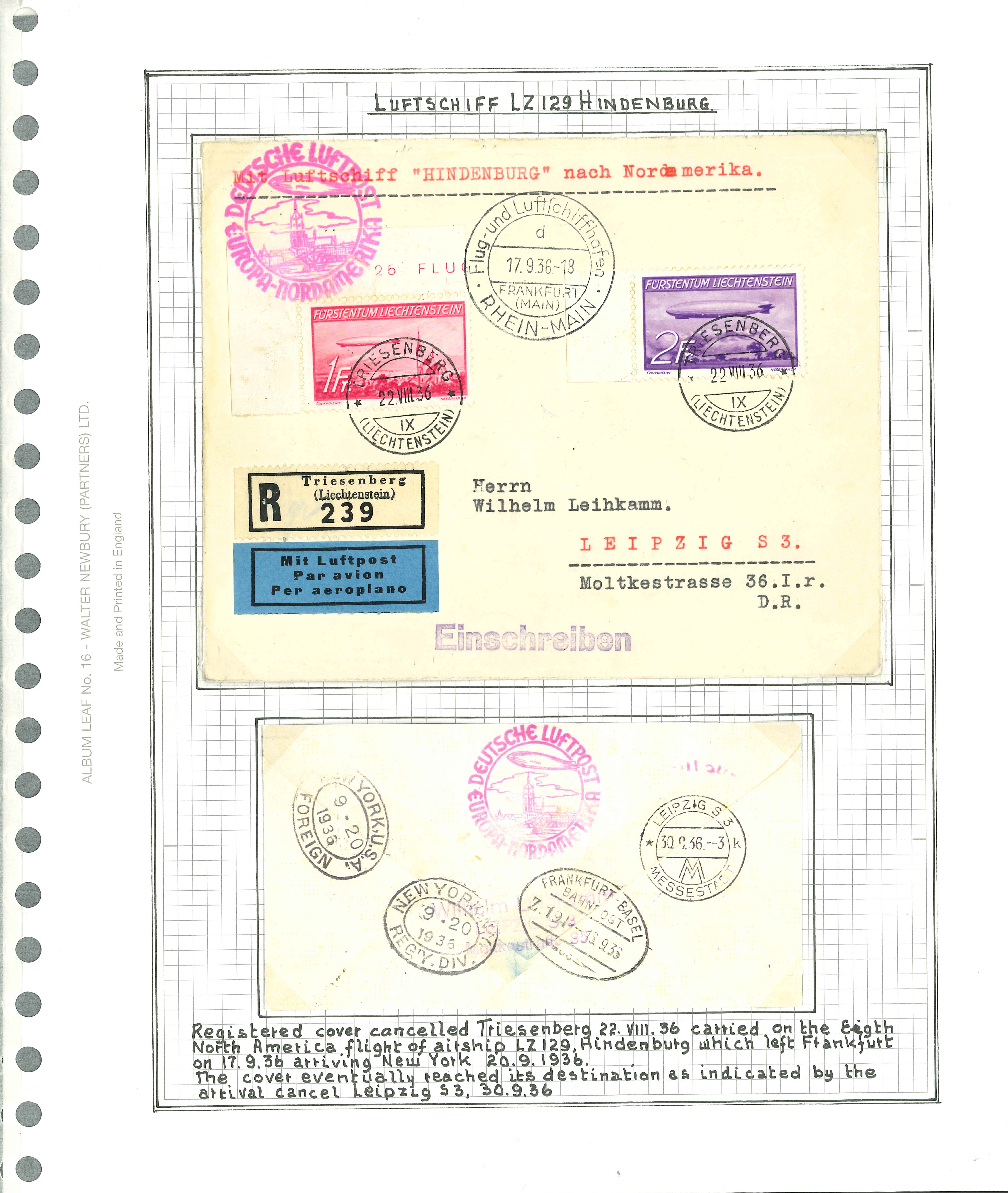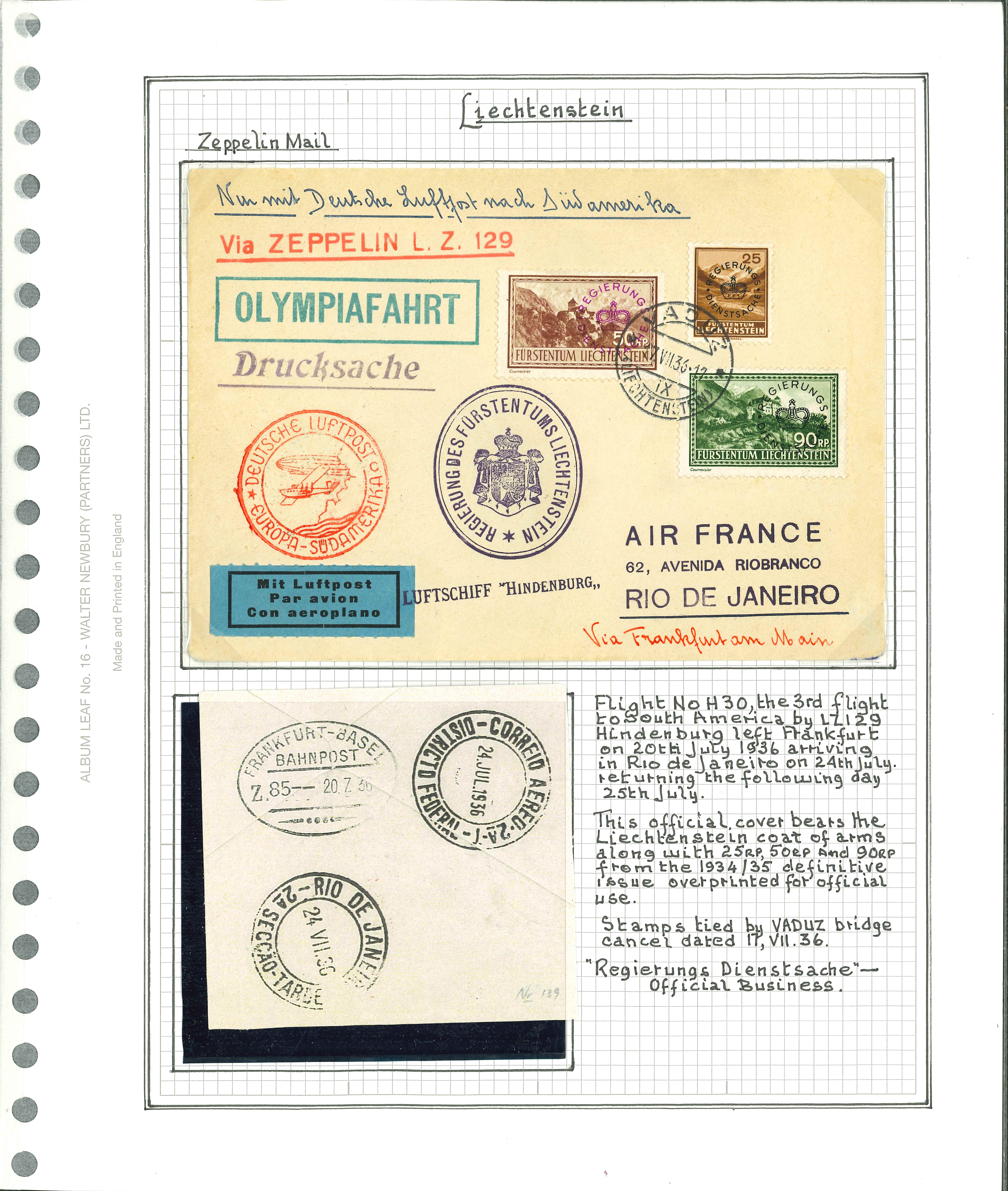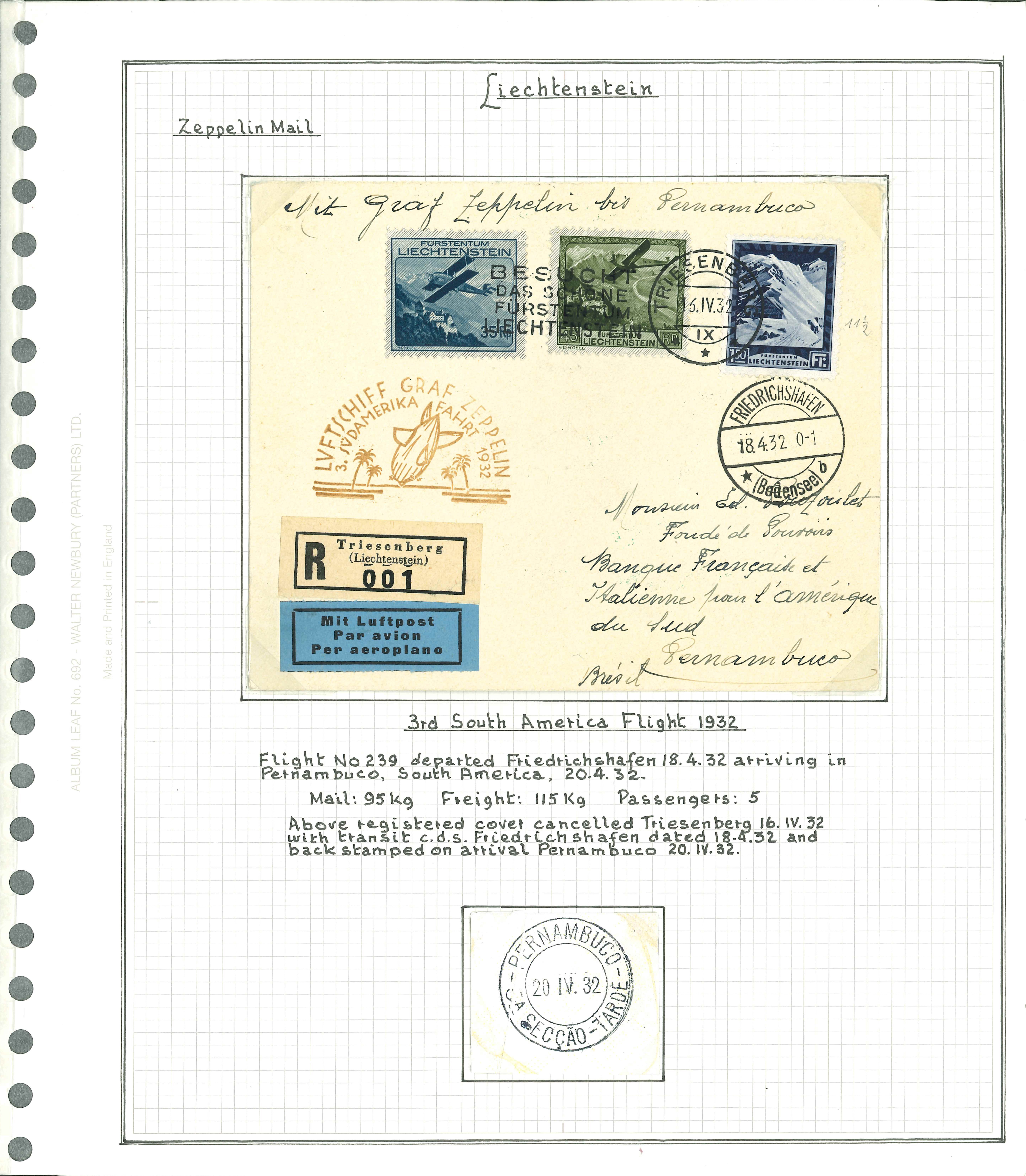 Liechtenstein: 1930-39 Zeppelin collection beautifully written up collection neatly mounted on album pages and housed in two Bordeaux ring binders, showing over one hundred and fifteen (115) Zeppelin flights, mostly all from South America