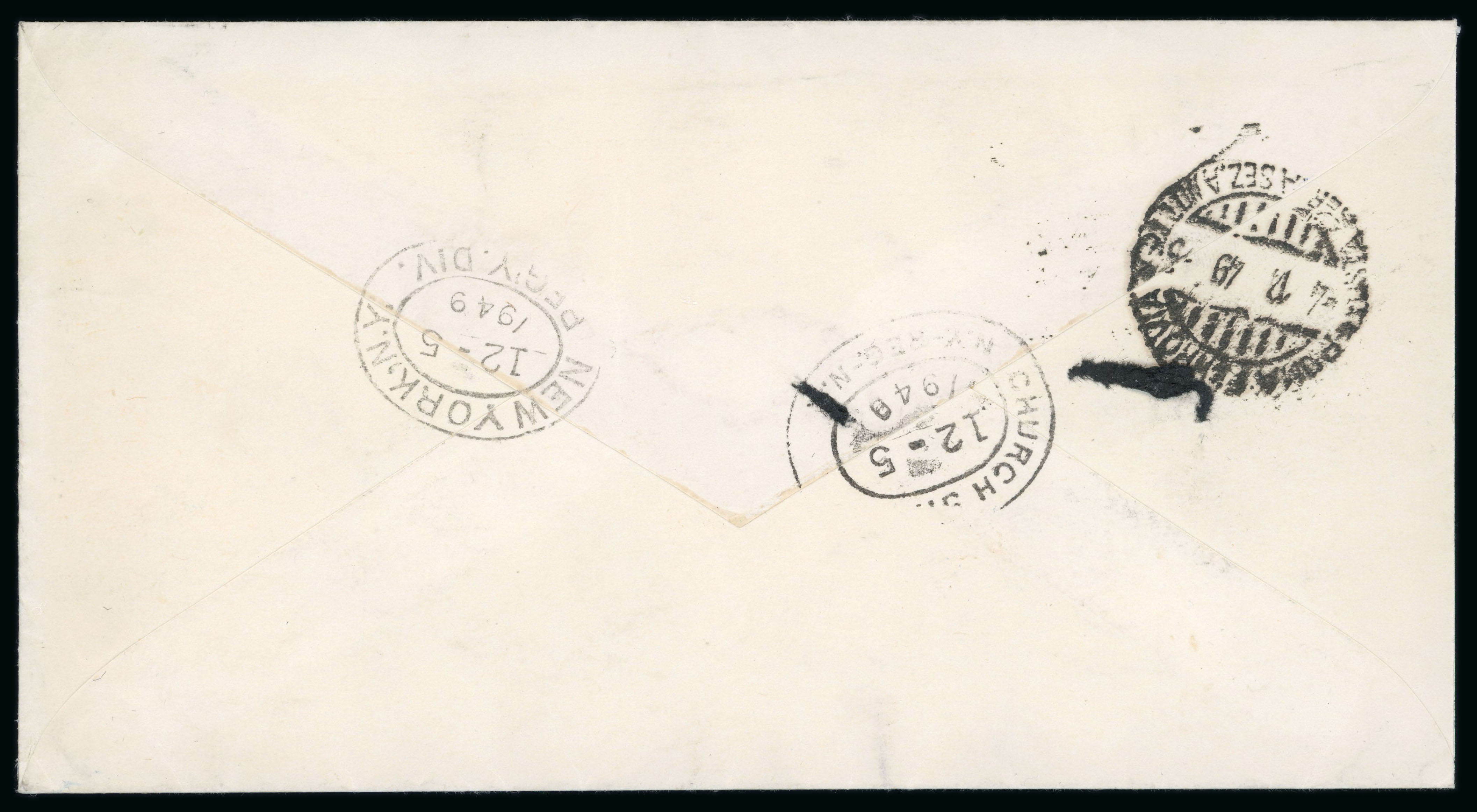 eighth finding with burn damage to the left side, cancelled by New York paquebot duplex. Possibly a unique usage with the Olympics mini sheet; cert. Hagedorn & Co (1974) from when this cover was last sold.