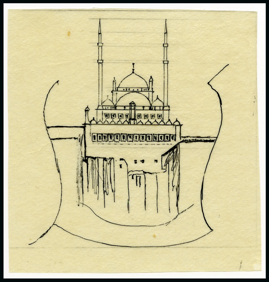 1941 Centenary of the Reigning Dynasty of Egypt (unissued) ink essay of the Citadel on tracing paper, very fine and unique (NP E490) (Image 1)