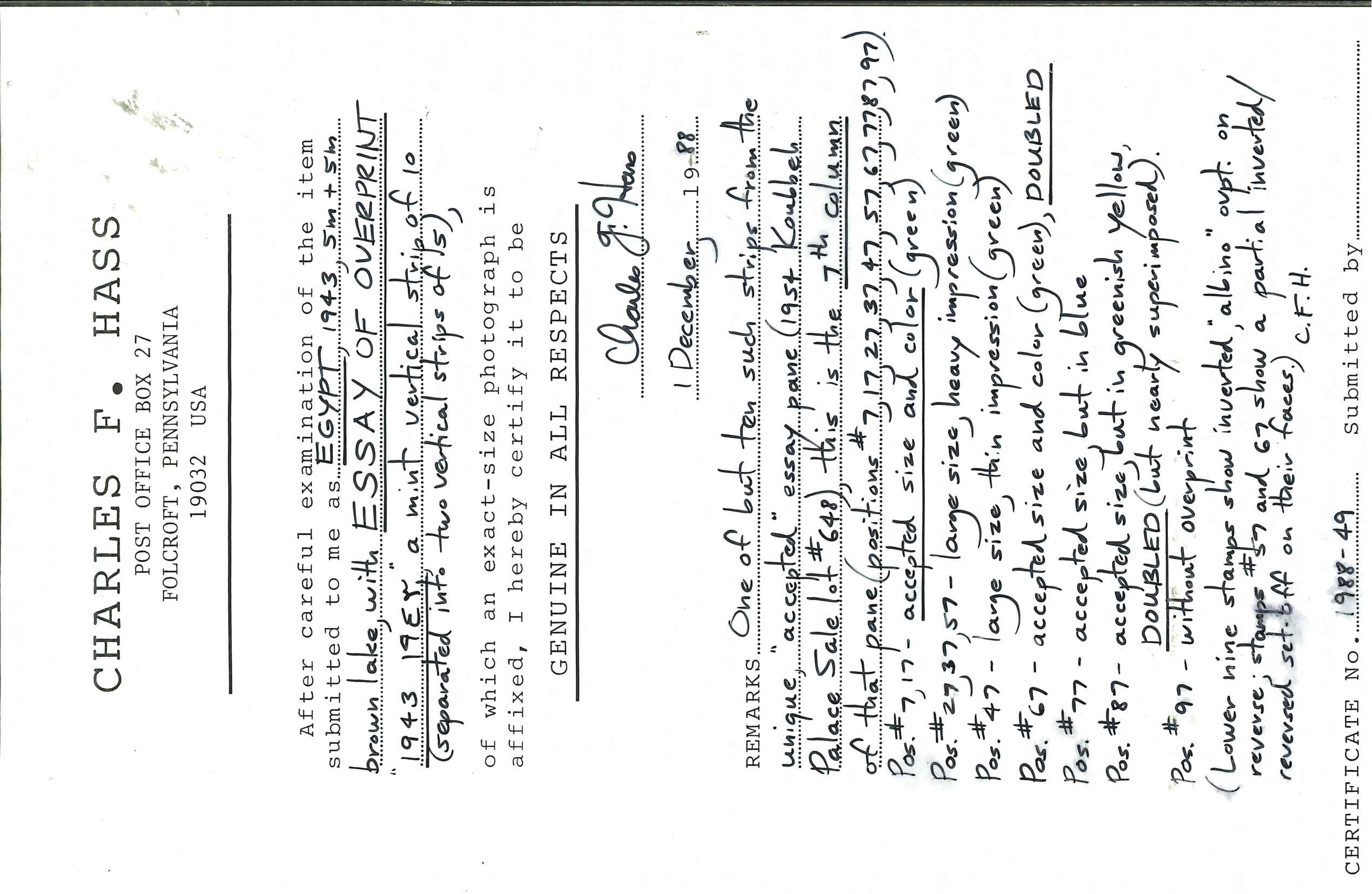 large size ovpts, heavy impression in green, pos. 45 large size ovpts, thin impression in green, pos. 55 large size ovpt, heavy impression in green, pos. 65 accepted size ovpt and colour green, doubled, pos. 75 accepted size ovpt but in colour