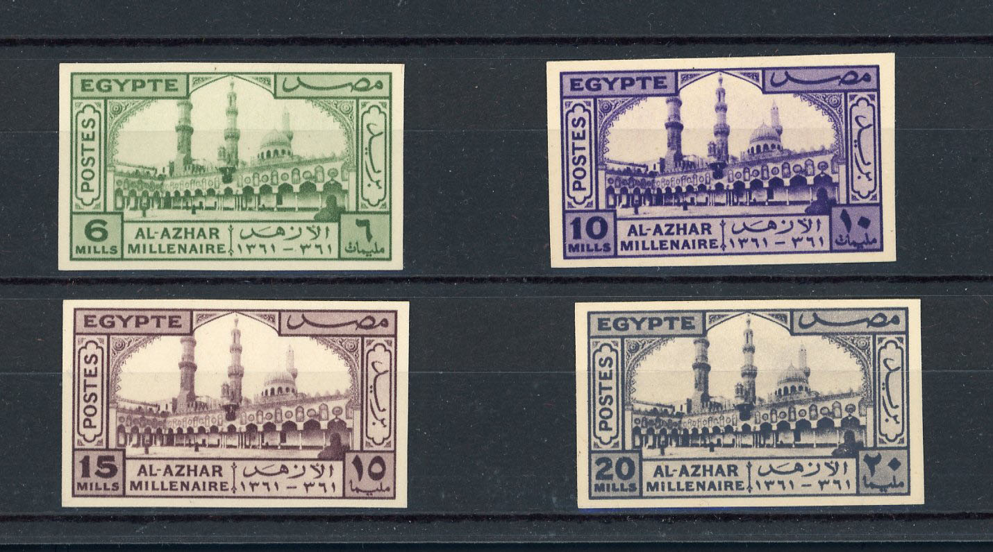 1942 AL-Azhar University: Complete set of four showing the Royal cancelled on reverse proofs, very fine and a rare set (4) (NP C87a-C90a, $1'800+) (Image 1)