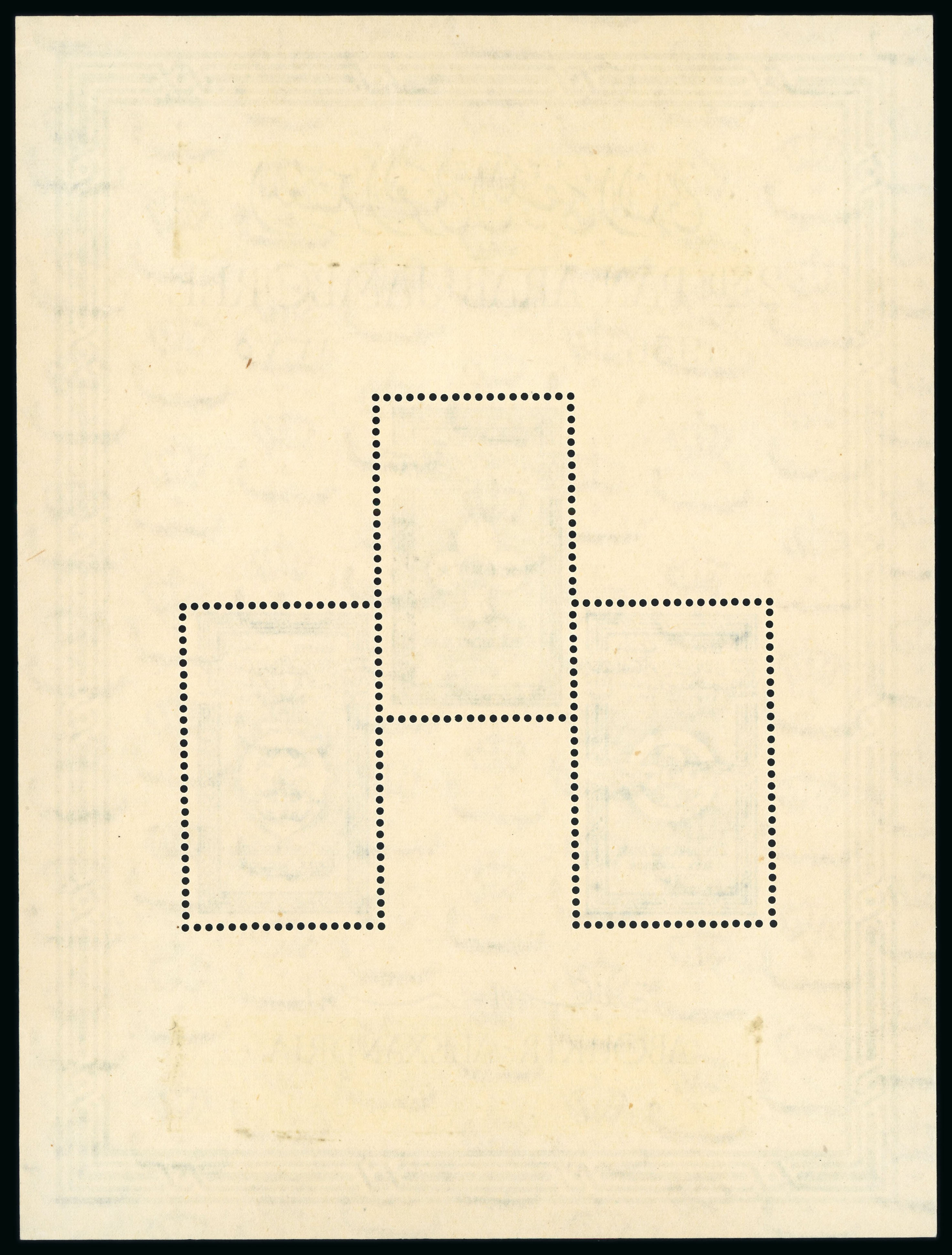 1949 Agricultural and Industrial Exhibition in Cairo, 10m olive-green, colour trial, Royal imperforate sheetlet of nine on watermarked paper, some paper adhesion in margin only, very fine and a unique colour trial sheetlet (Nile Post