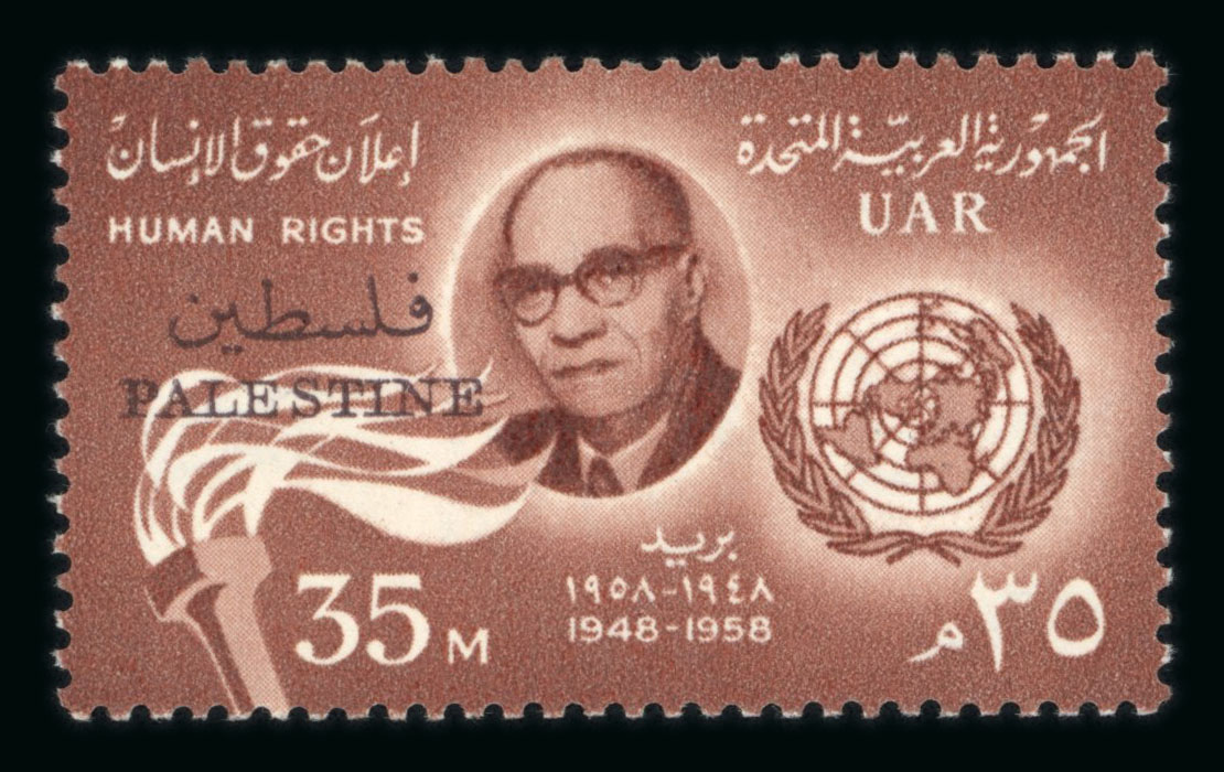 1958 Human Rights: 35m brown, mint nh single, colour trial showing overprint in brown, very fine and extremely rare as only 50 were printed (Image