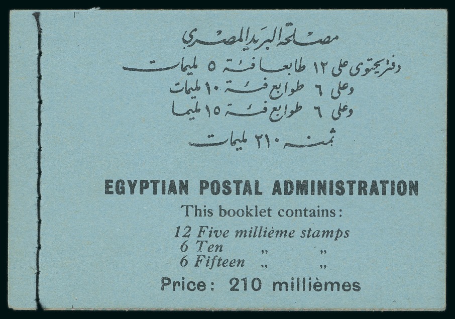 210m. booklet: complete booklet with two panes of six of the 5m. red-brown (3x2), one pane of six of the 10m. violet (3x2) and on pane of six of the 15m. brown-purple (3x2), stitched on the left and Arabic Postal instructions