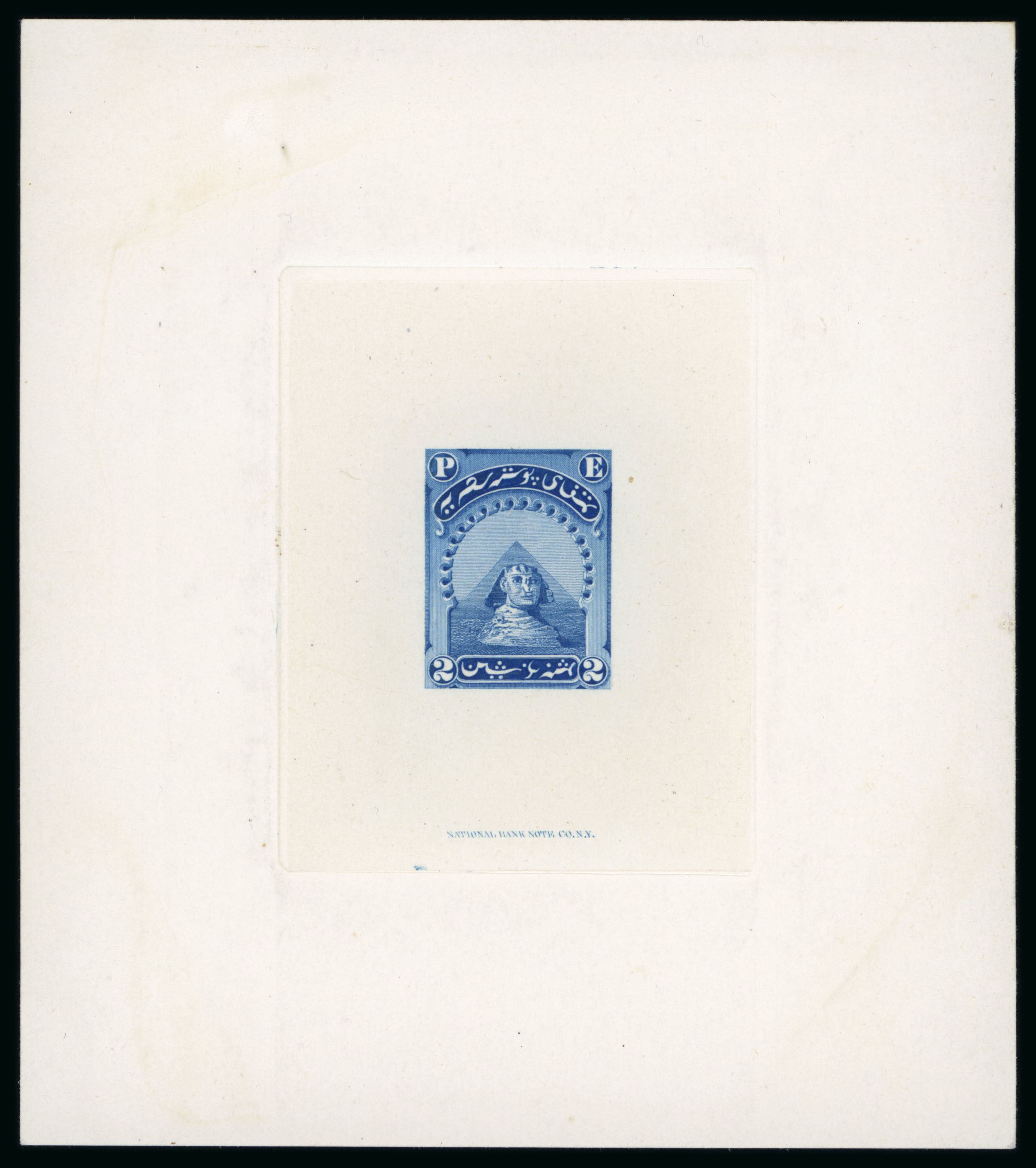 1867 Essay of the National Banknote Co., New York: 2pi blue on India paper, mounted on card, very fine and scarce (Nile Post E35) (Image 1)