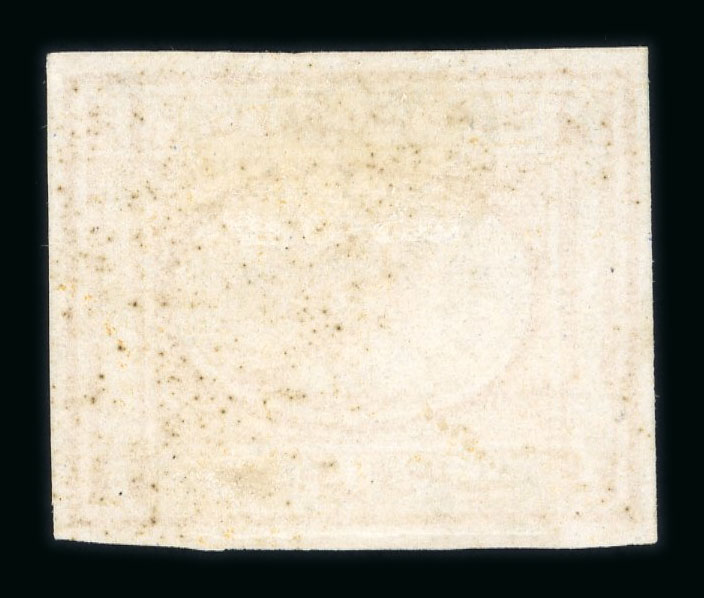 5pi rose, a proof vertical imperforate strip of three, an outstanding first-issue variety showing the broken "5" and types I and II, an exhibition showpiece; unwatermarked, with a paper fold along the left side. (Image 1)