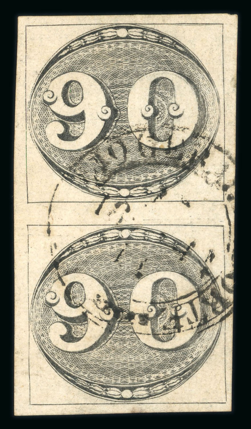 showed the final letters of this cancellation — this example shows the beginning, making it a desirable complement to complete the marking. (RHM $4,400). (Image
