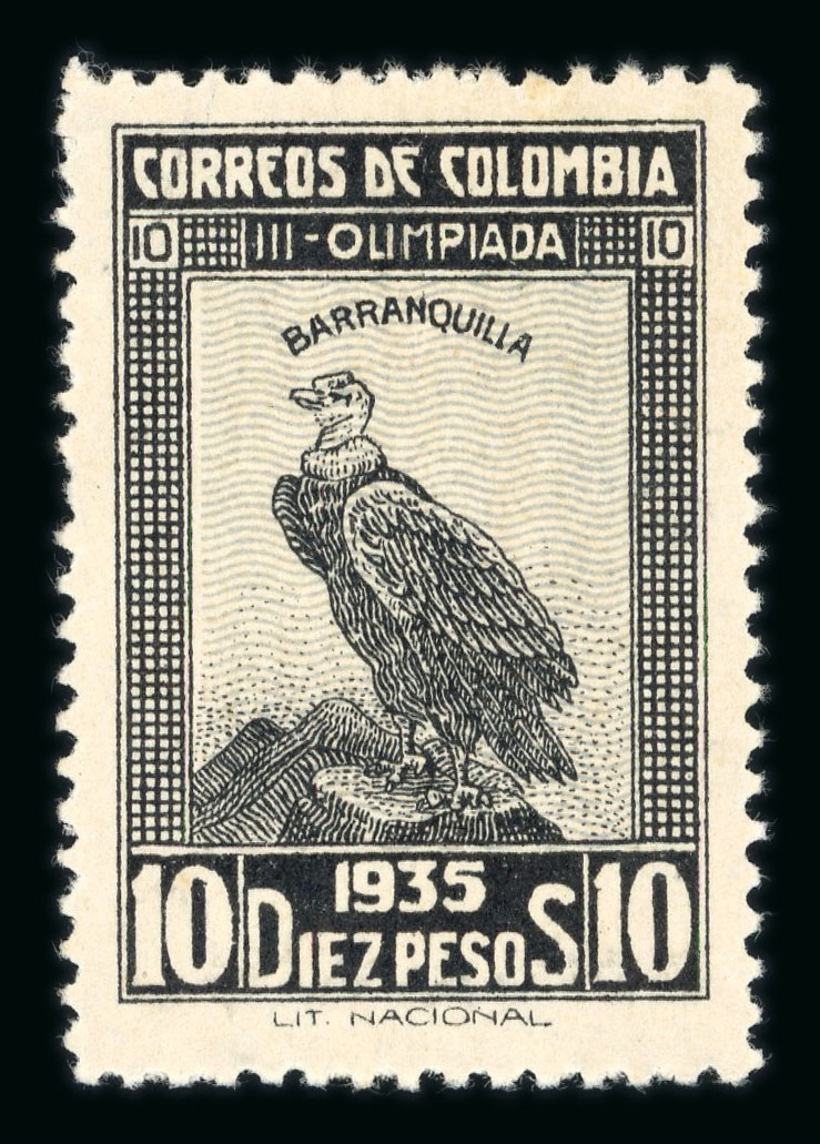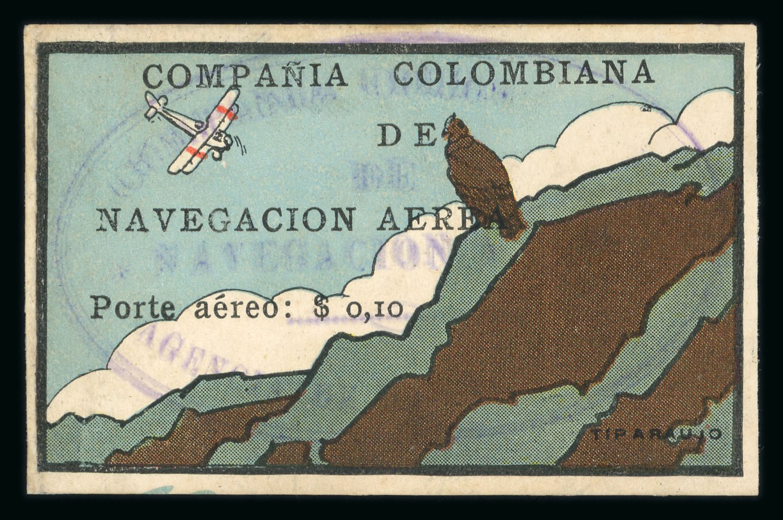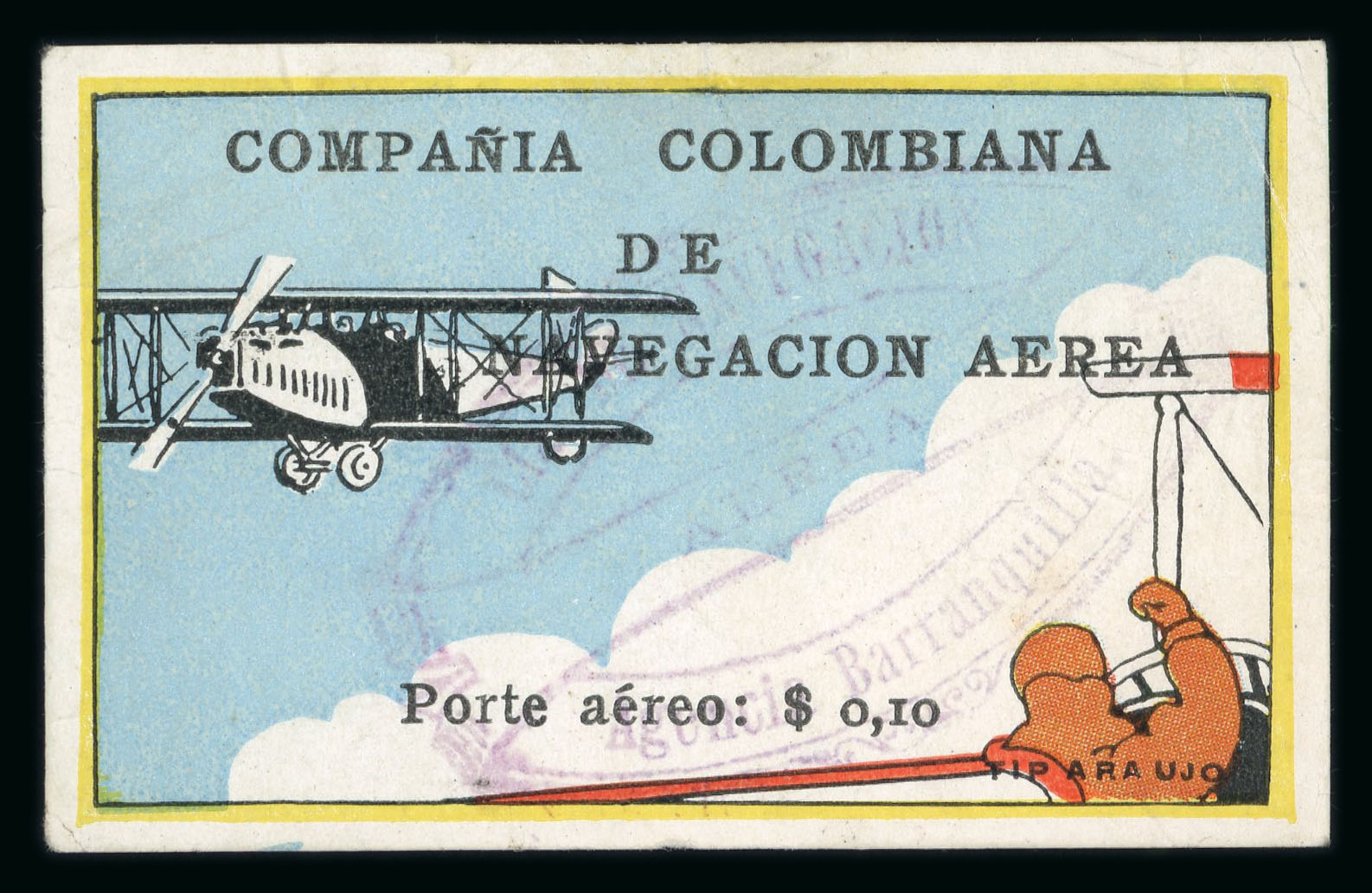 1920 Compañia Colombiana de Navegacion Aerea "Left Wing of Biplane" good even margins, a very slight stain spot on reverse not detracting from a fine example of this rare and desirable stamp of which only 31 unused examples are recorded.