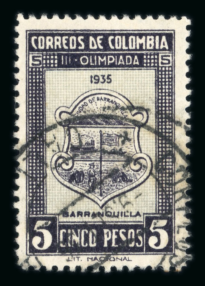 1934 3rd National Olympic Games 5p Arms and 10p Condor both postally used, the 10p with Stolow handstamp. (Image 1)