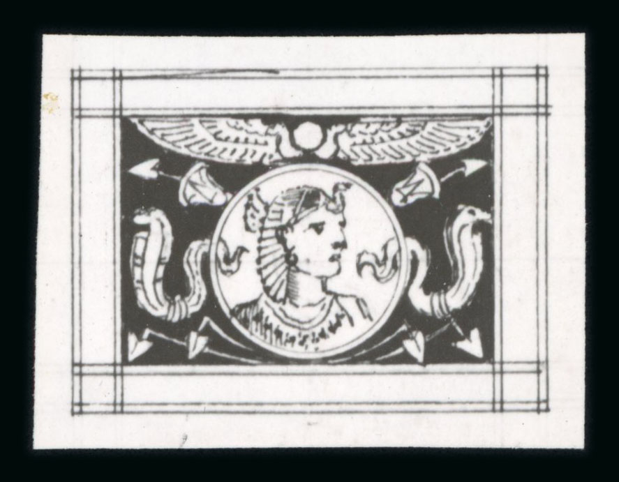 Unadopted photographic essay by De La Rue depicting a female effigy in the central panel surrounded by other Pharaonic symbols, attractive and rare, possibly rejected design for the De La Rue issue (Image 1)