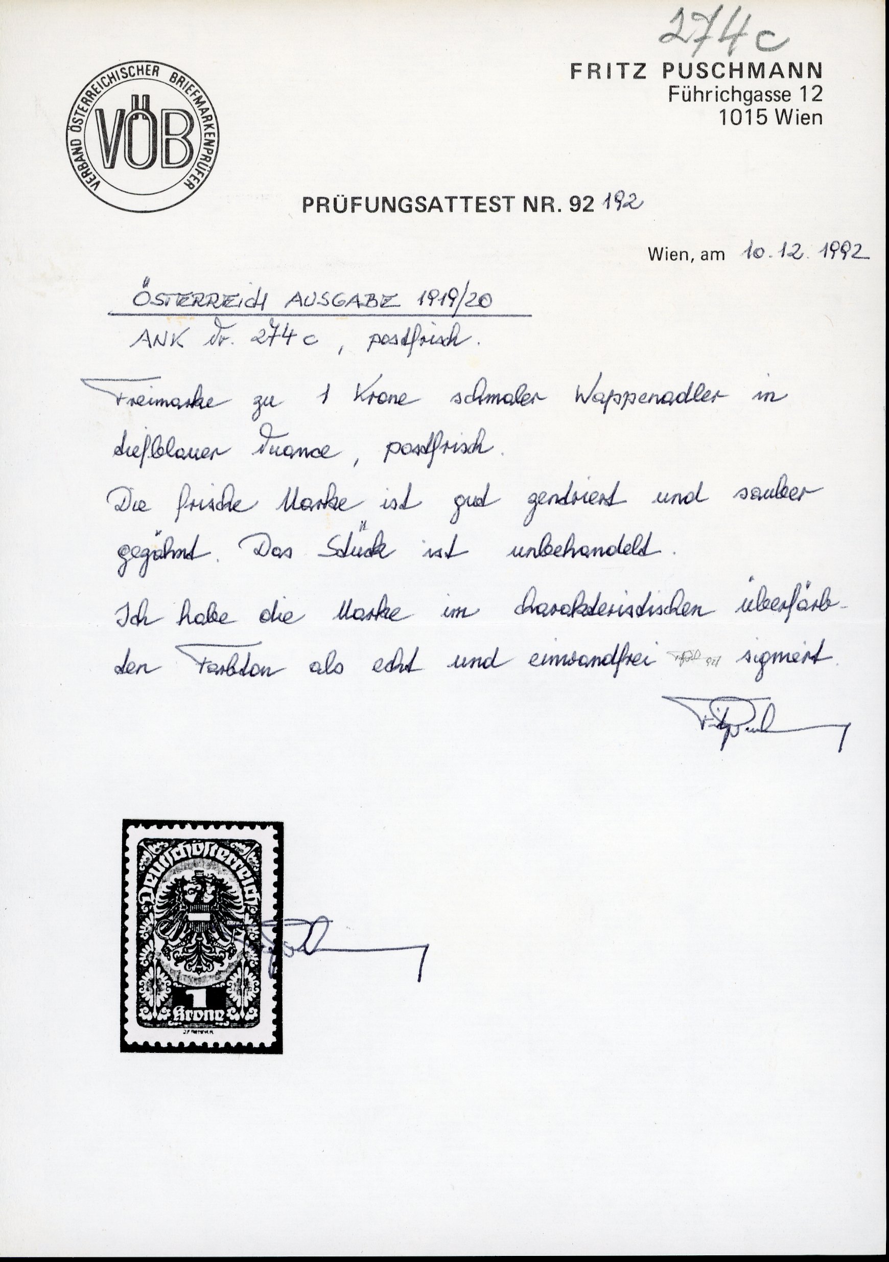 Get Market Data for [Austria 274xc] Visual Pricing Guide Sample Census