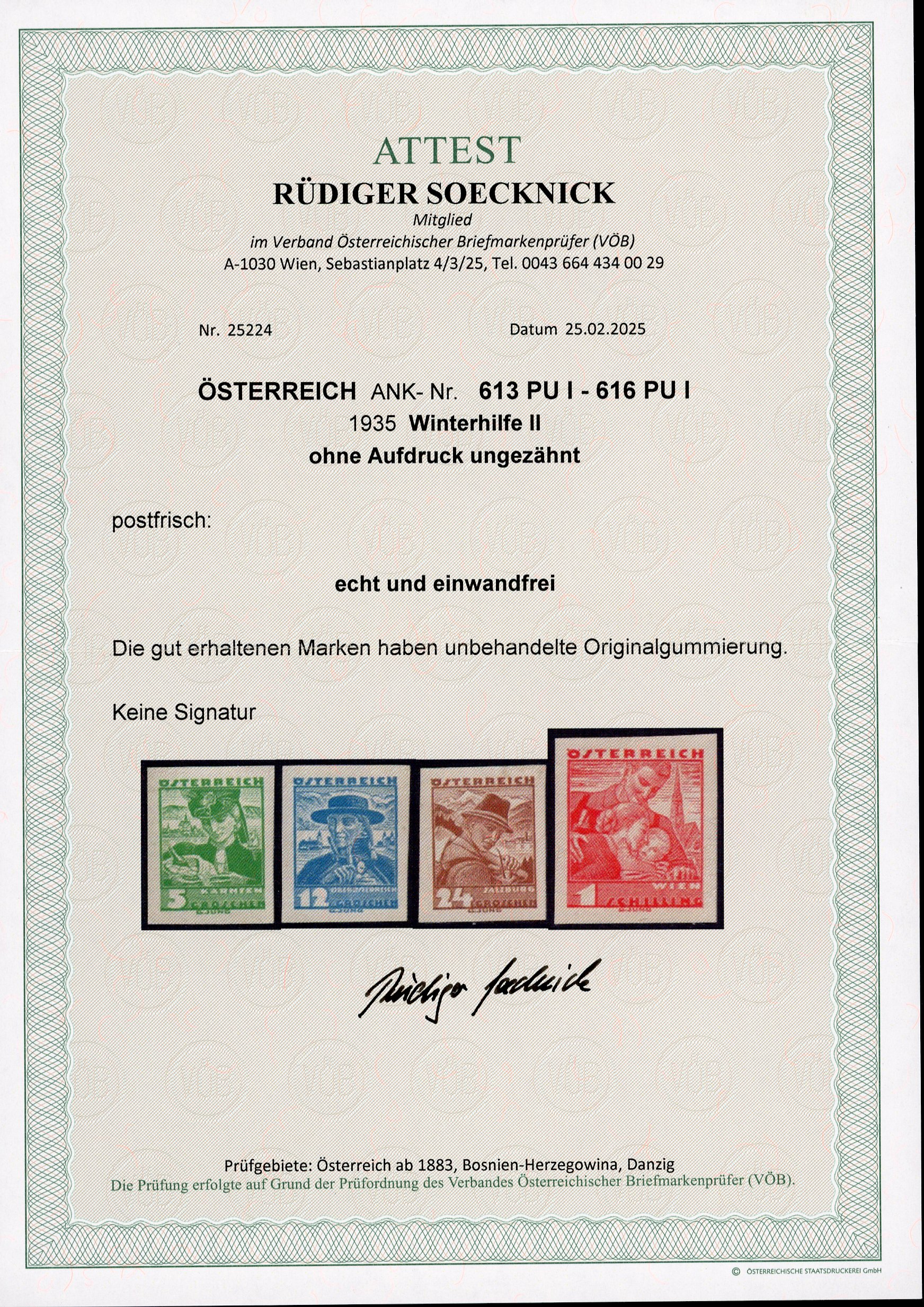1935, Winterhilfe II ungezähnt, ohne Aufdruck, postfrisch, Prachterhaltung, Attest Soecknick, ANK und Mi 613 PU I -16 PU I, €800 (Image 1)