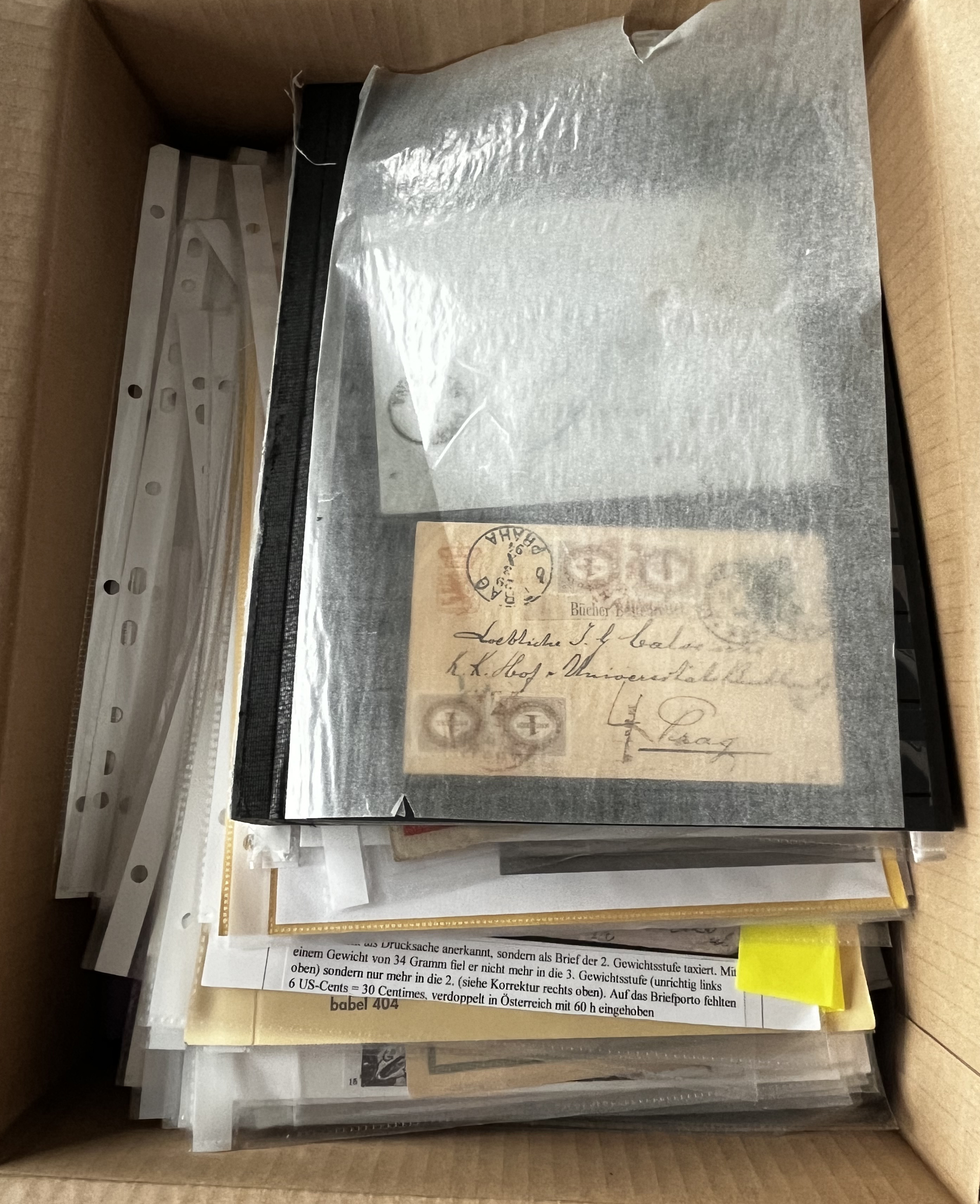 exhibition collection (Folder with copies and often detailed descriptions, for many covers the collector spend above 100 EURO (e.g. 500 EURO for postcard 1890 which was lost for 9 1/2 years in Wrschowitz and delievered 1900). Some certs, signatures