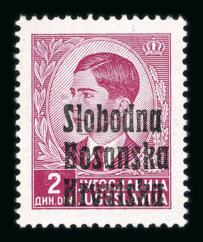 1941 set of five Yugoslavian stamps of Postal Employees, 40,000 of these sets were found and on the fall of Yugoslavia and to use them up the new postal authorities overprinted single sheet of 25 of each value with three-line overprint,