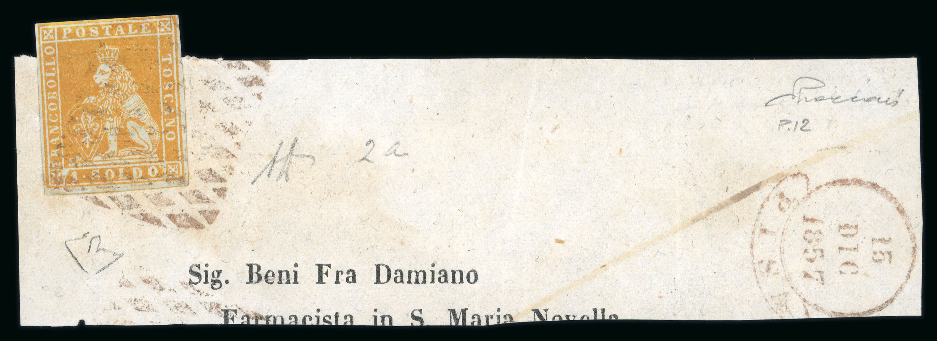 1850-1862, small mostly used collection with Modena, Papal states Sassone n° 20 used on fragment signed Diena, Lombardy n° 42/45 used and signed Diena, Tuscany n° 2 on fragment with Diena and Vaccari certificates, fine condition and high