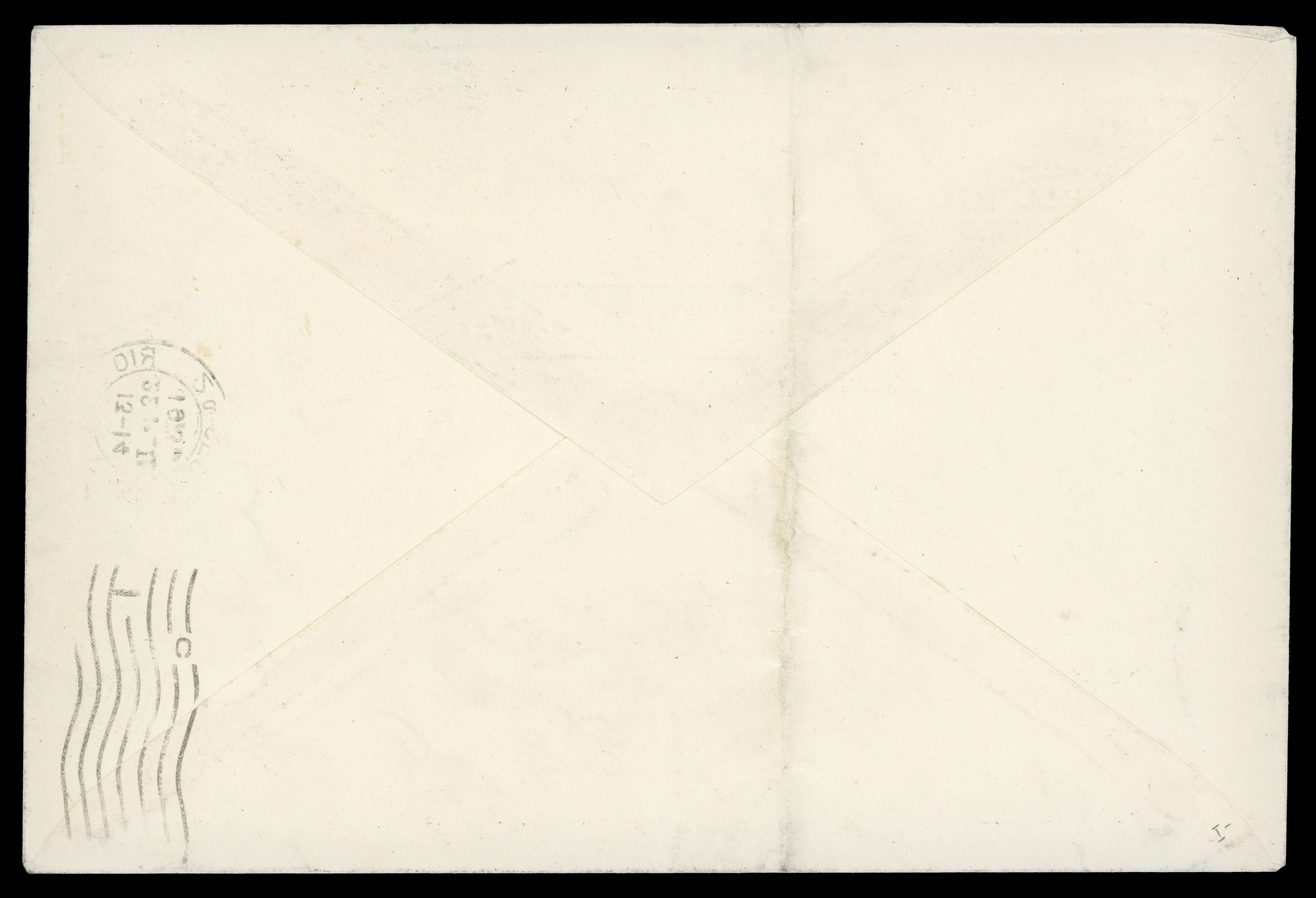 1930 (Dec 15) First Transatlantic Flight printed envelope sent from Rome to Brazil with 7l60 Transatlantic issue and 1l25 definitive, Rio de Janeiro arrival, light cover crease at left, very fine and scarce. (Image 1)