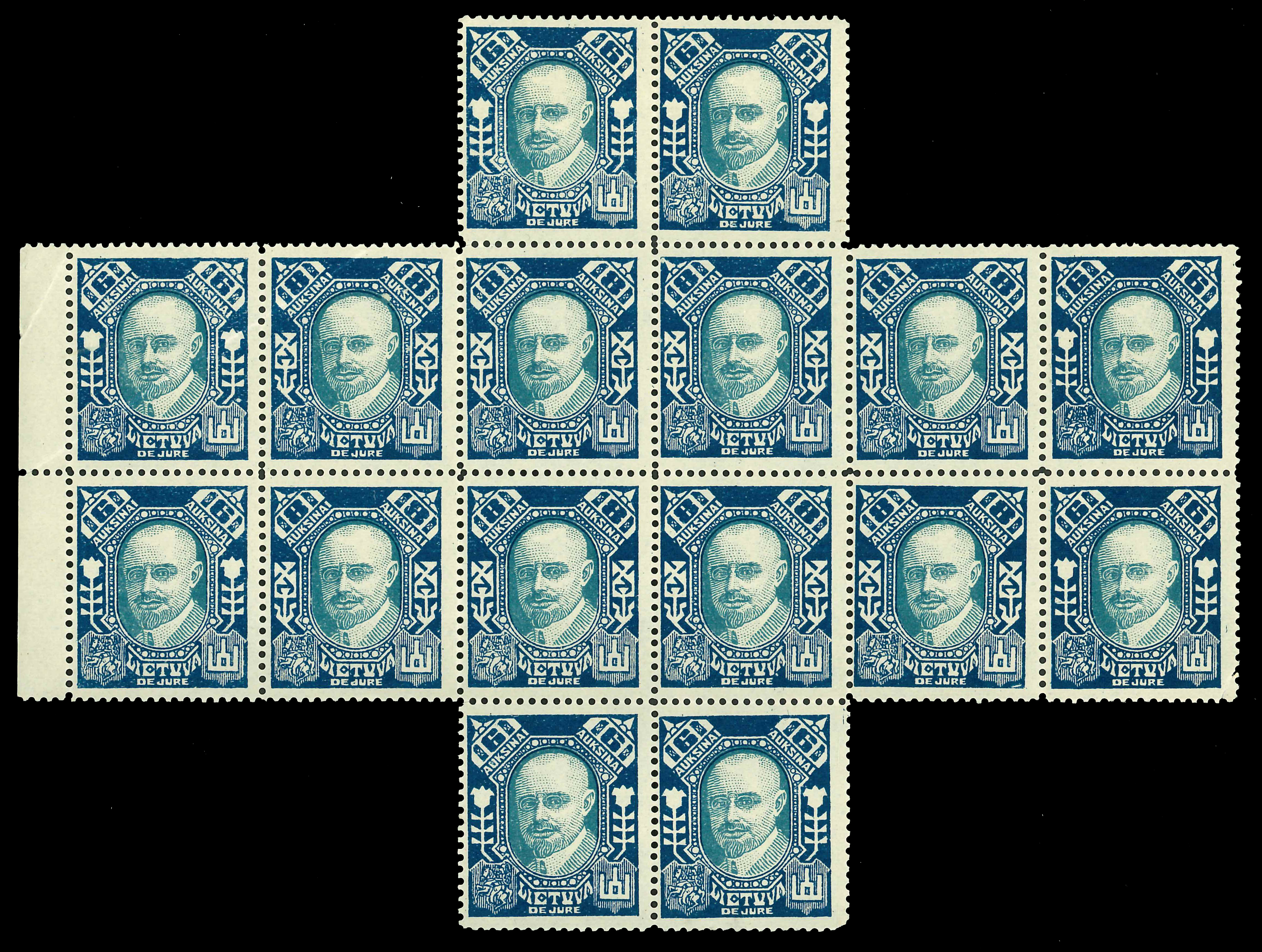 1922 Dr Stulginskis 8s instead of 6s, eight examples within a block of 16, one 8a stamp creased which in no way detracts from a very rare intact multiple, fresh mint never hinged, a rare opportunity to acquire this dramatic multiple, so
