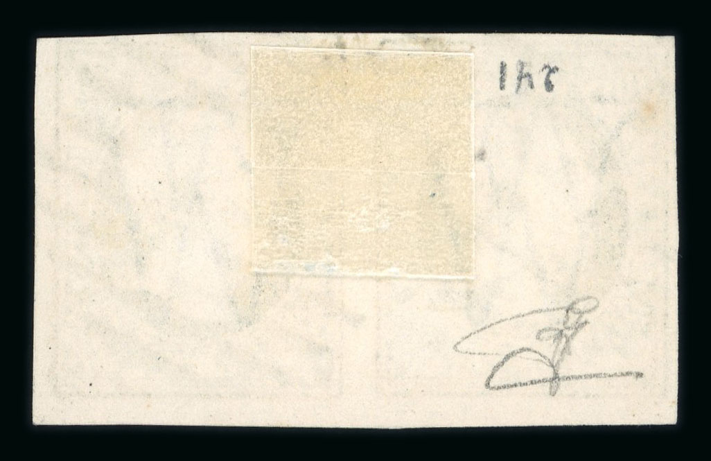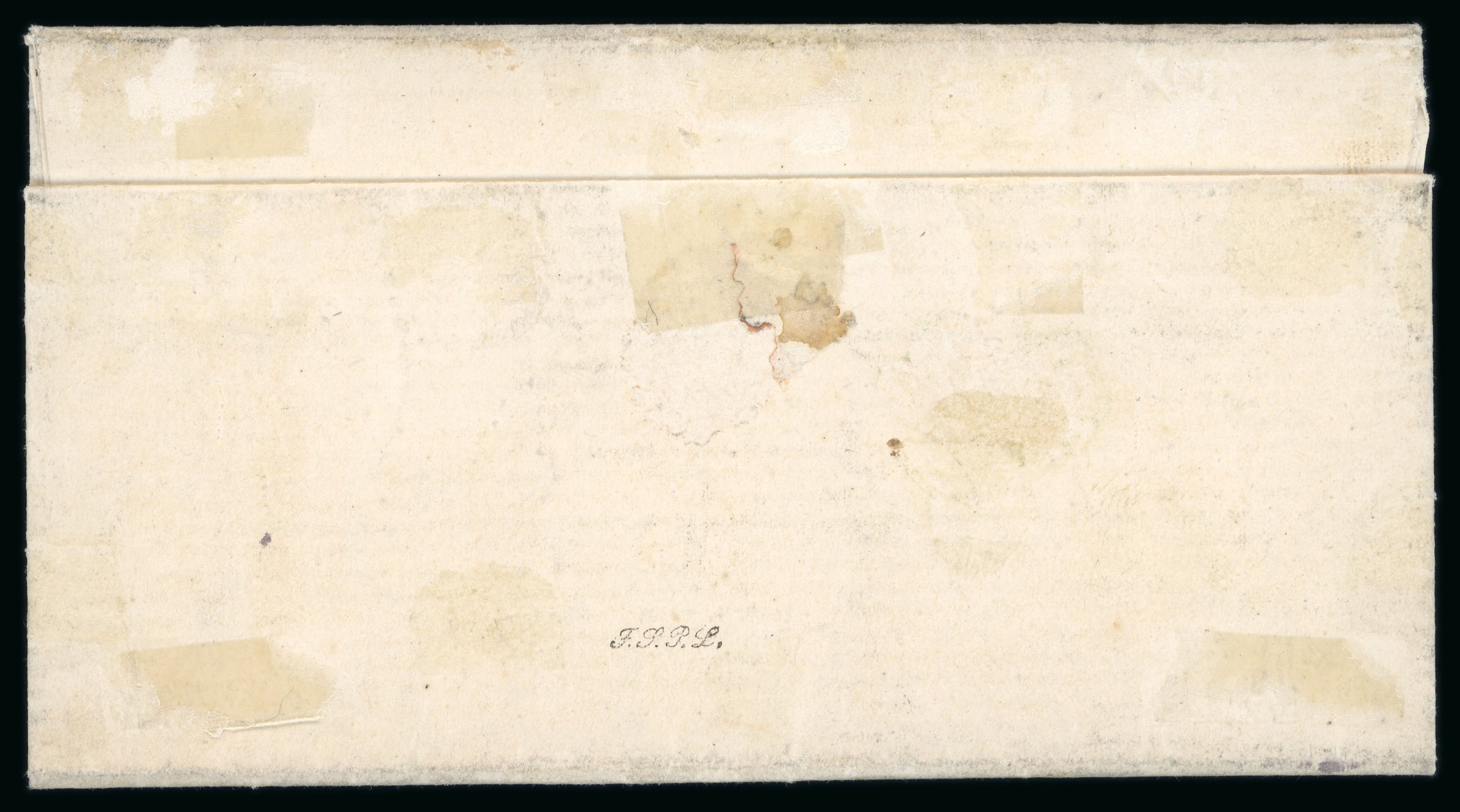 and erased framed PD top left, the stamps lifted for inspection and re-attached by hinge, ex Dupont; a fine and rare item to England. (Image 1)
