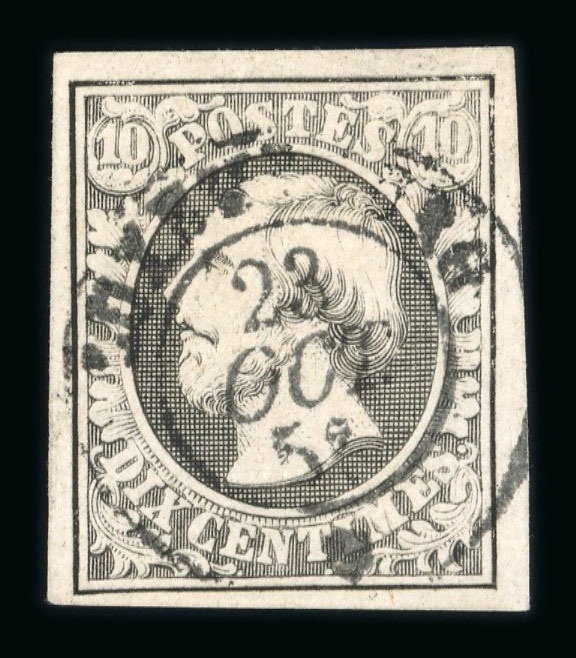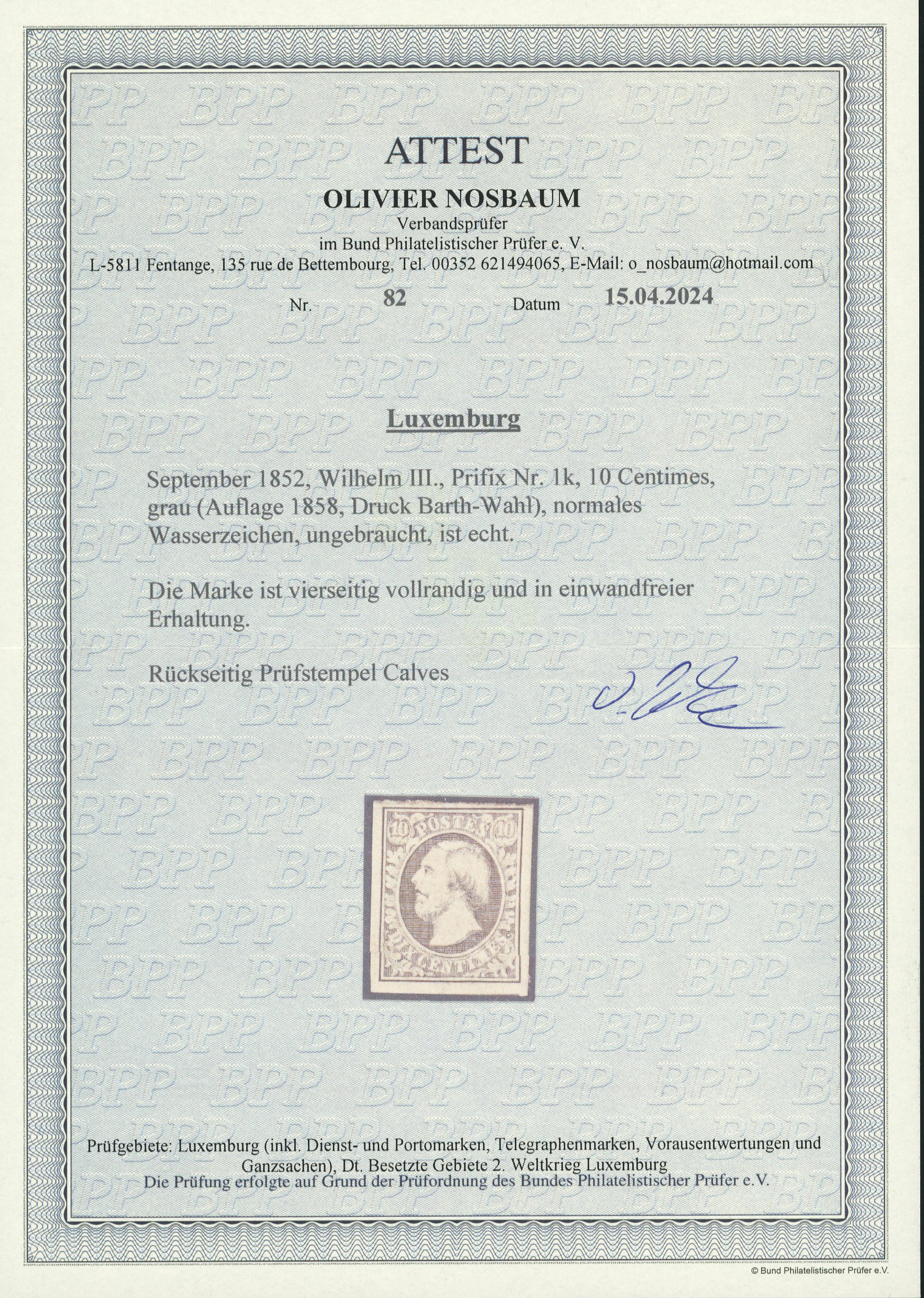 1858 Last Printing 10c grey, four good margins fine used with virtually full Luxembourg cds; cert. Lars Böttger. (Image 1)