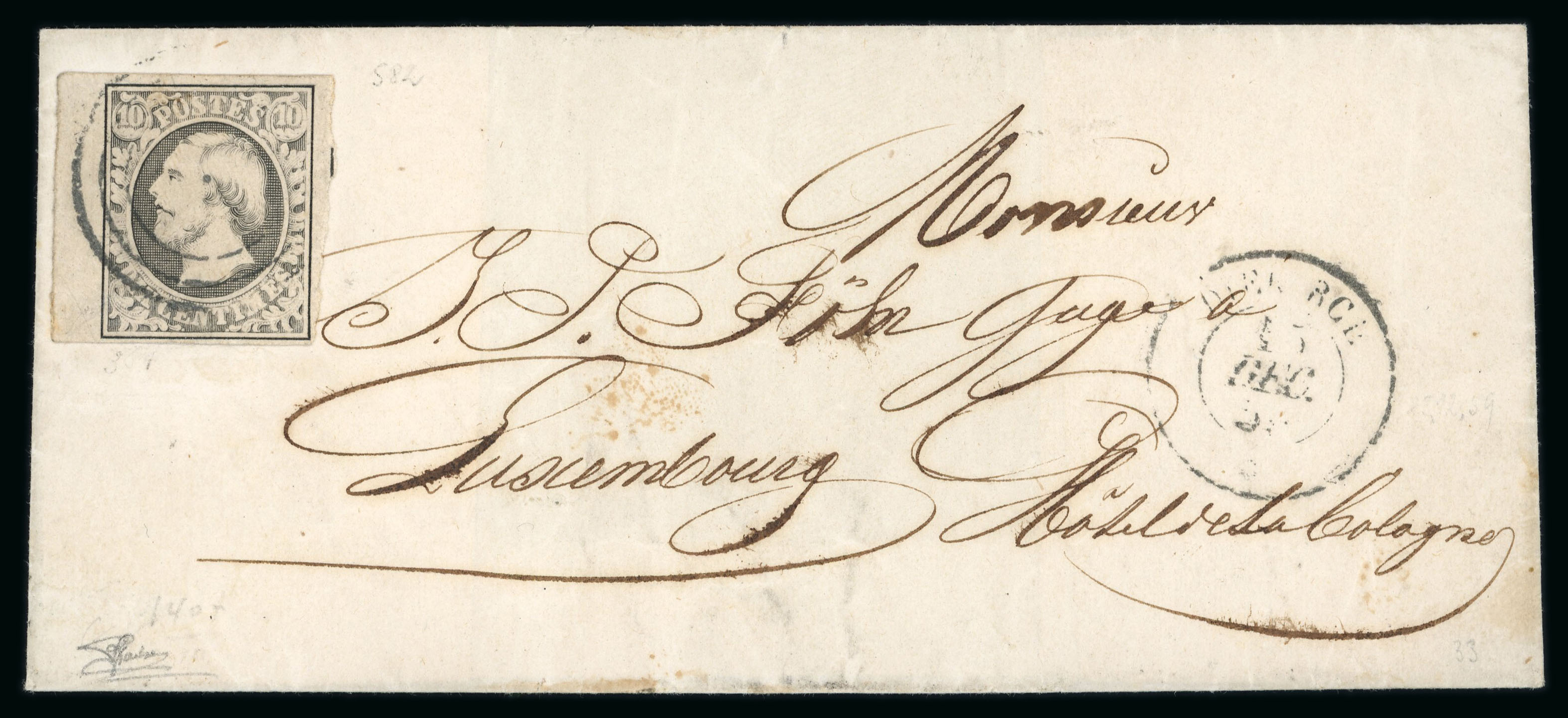 1858 Last Printing 10c grey, retouch No.8, tied to entire by 8 1/2 bar Clervaux handstamp with cds above to Weiler, illustrated in Müller handbook, F.S.P.L. guarantee handstamp, Demuth Certificate (1996). (Image 1)
