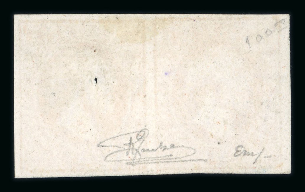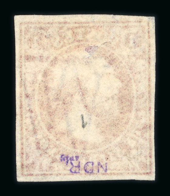 1858 Last Printing 1Sgr carmine-rose, four even margins on thin paper, fresh unused without gum, a fine example of this rarity, Demuth Cert (1998). (Image 1)