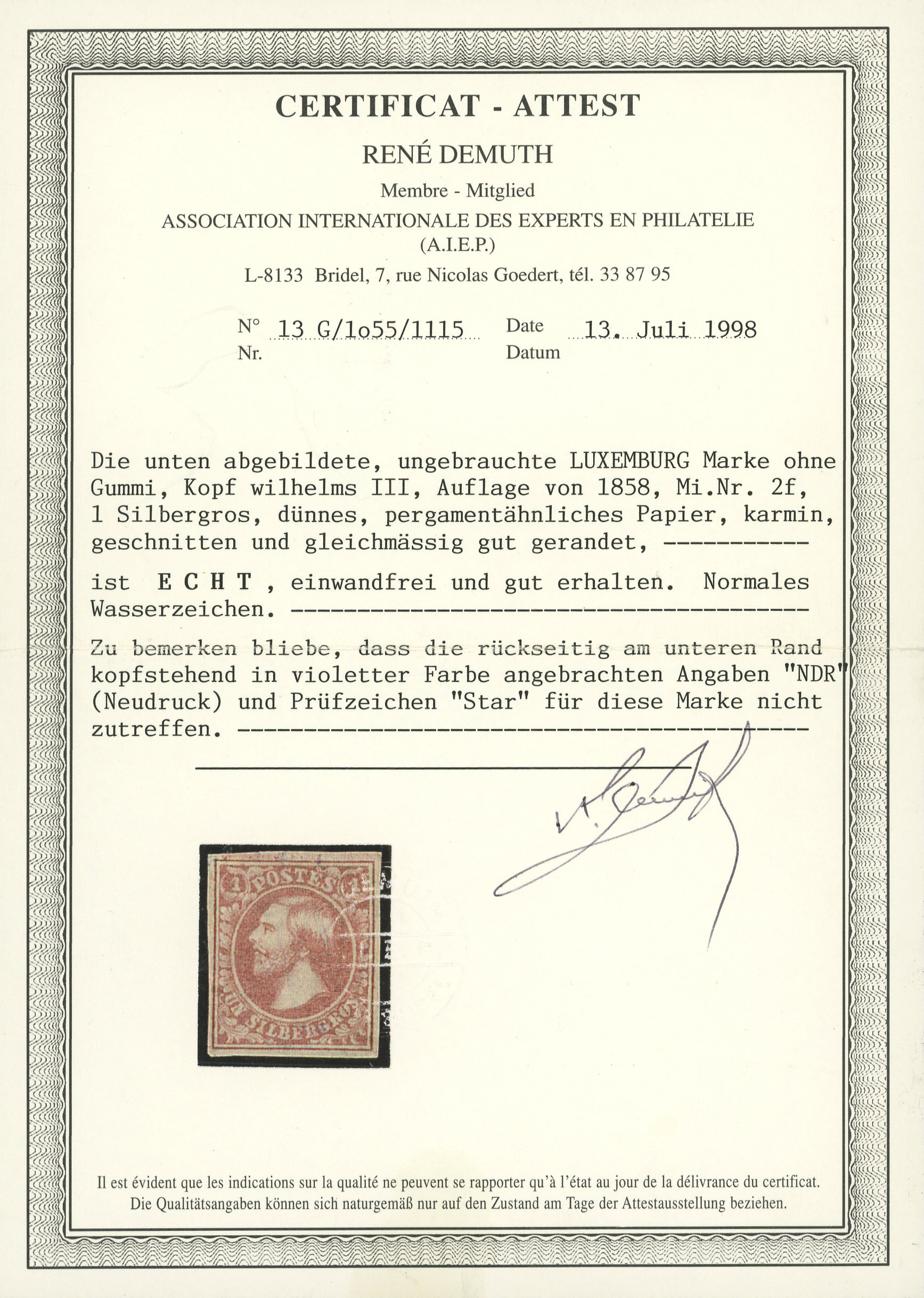 hinged back for inspection, a fabulous item and one of the rarest in Luxembourg philately, ex Dupont. (Image 1)