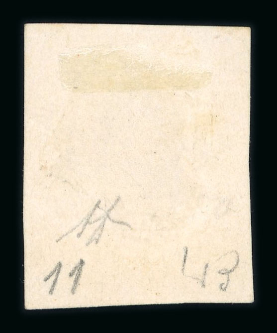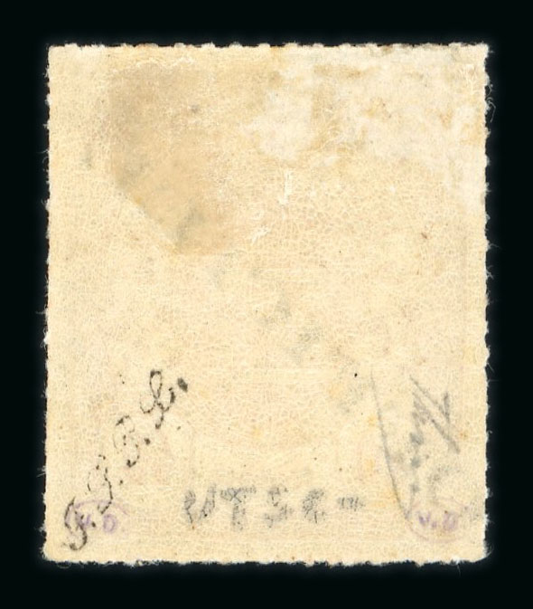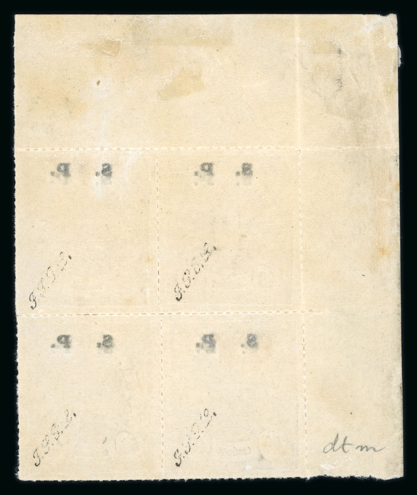stamp bottom row, a fine and dramatic aspect, heavy hinging on reverse. Only a couple known to exist, signed Demuth and BPB Cert (2003) (Image 1)
