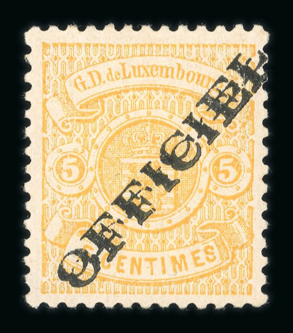 Officials: 1875 40c dull orange marginal pair overprint inverted hinged mint, FSPL signature, 40c pair unused with raised 'L', BPB Befund, single unused without gum and a used single signed Goebel and FSPL. (Image 1)