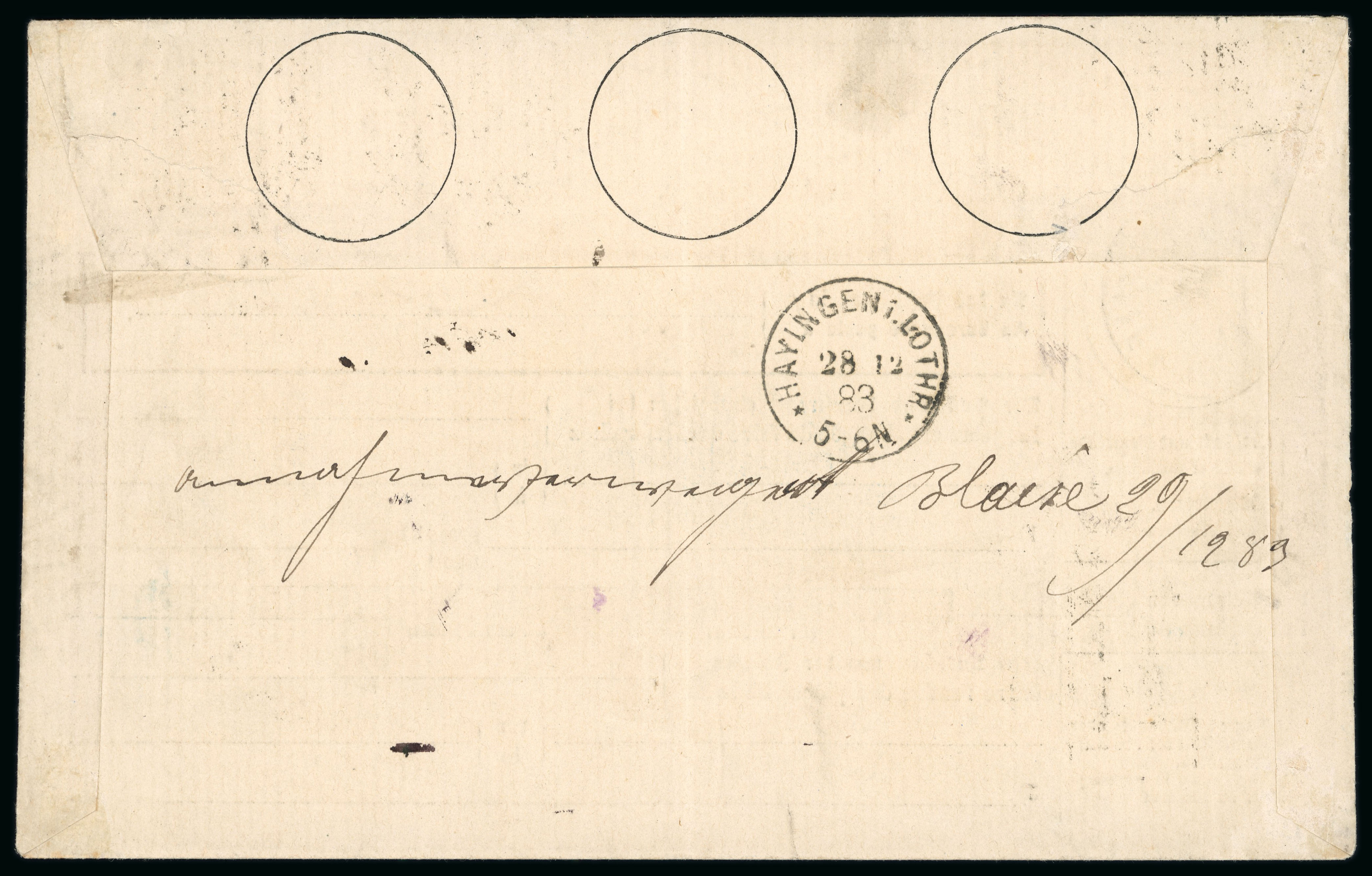 1893 3h green postal stationery wrapper registered and uprated with 1oh to Hannover tied by single cds with framed registration at left, arrival backstamp; fine and attractive (Image 1)