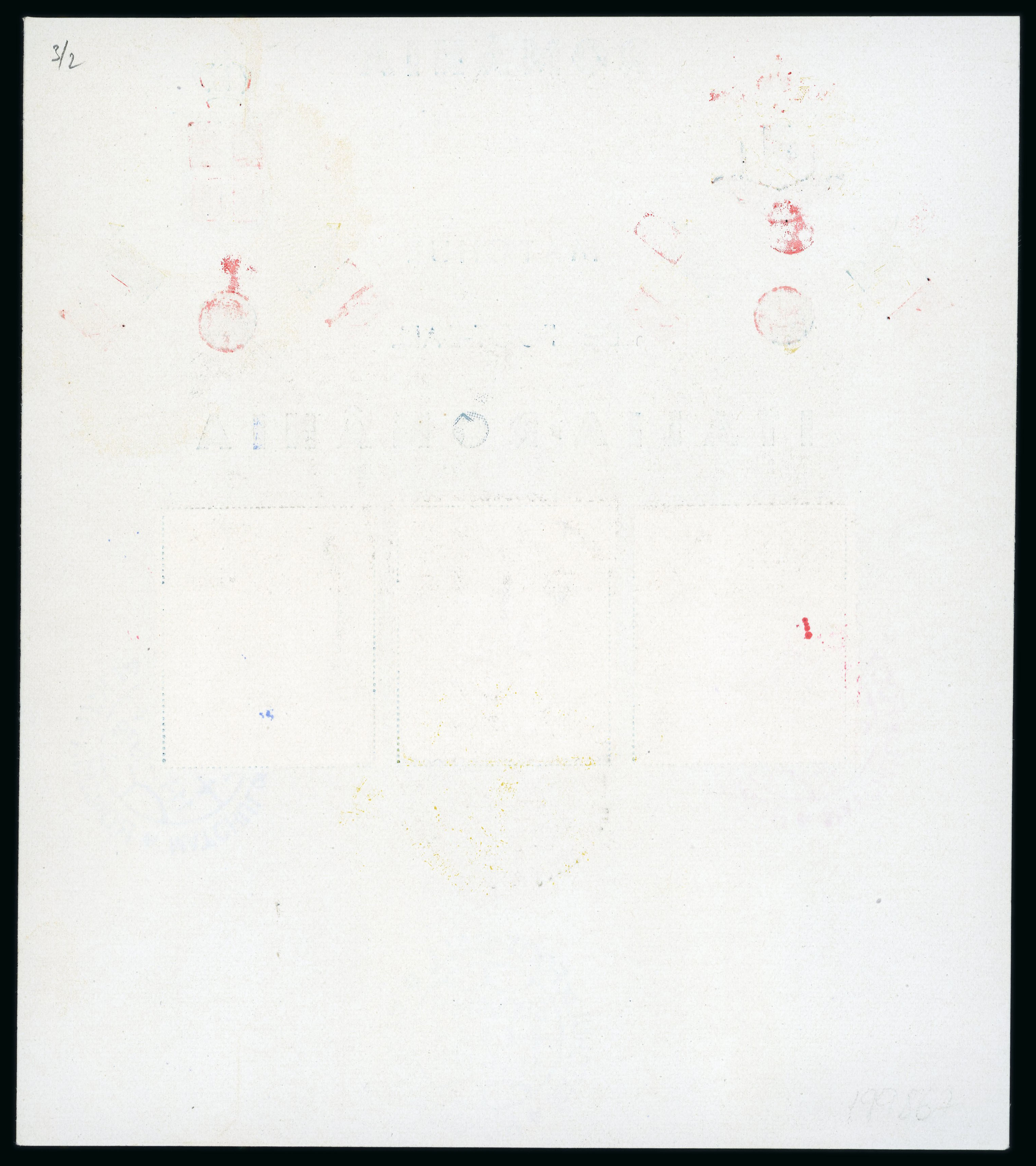 Silistra/South Dobruja group of eight imperforate proofs including a 15b in an unissued design, in different colours to issued set, King Ferdinand designs, four different designs, one with four different colours with at least five values in each
