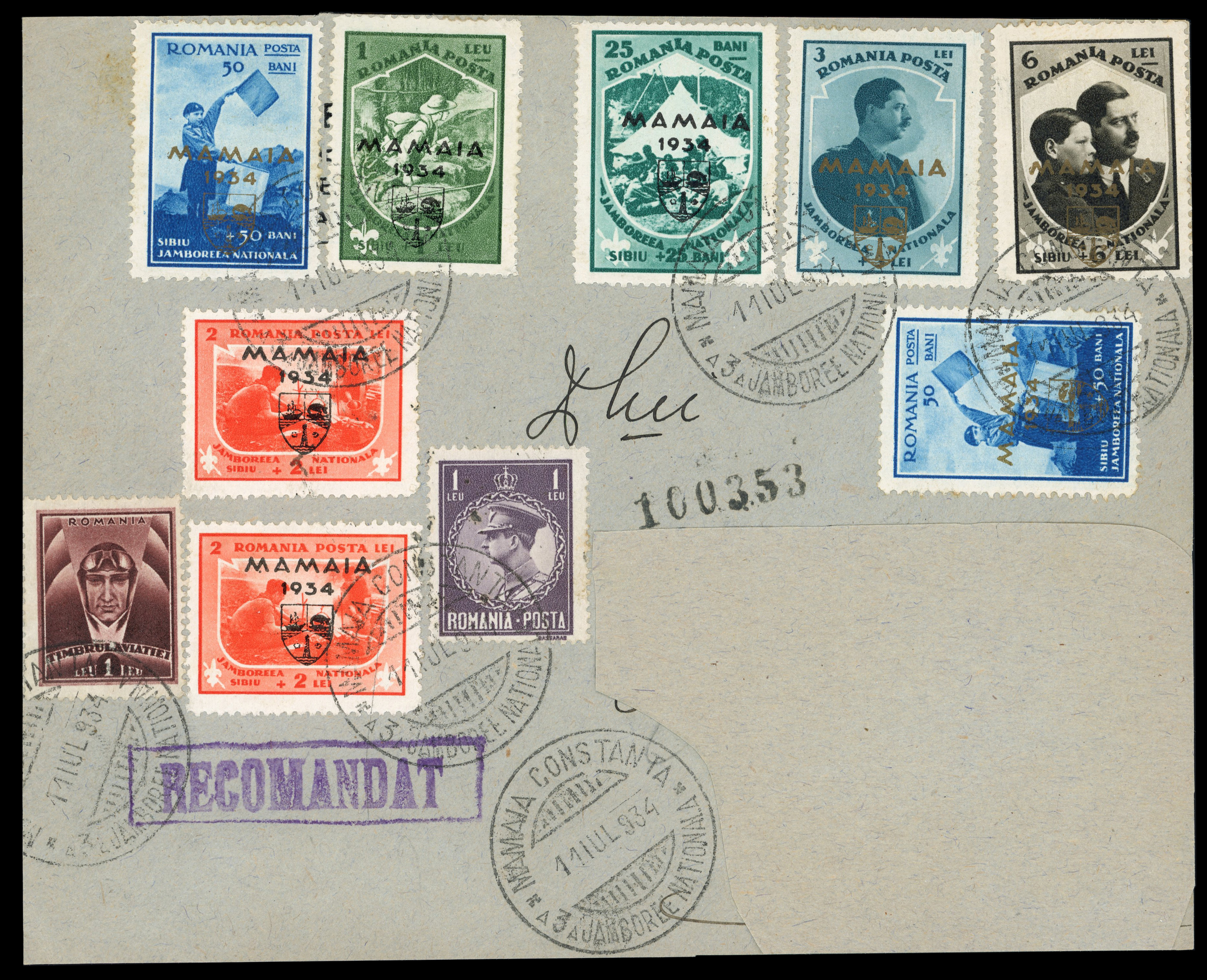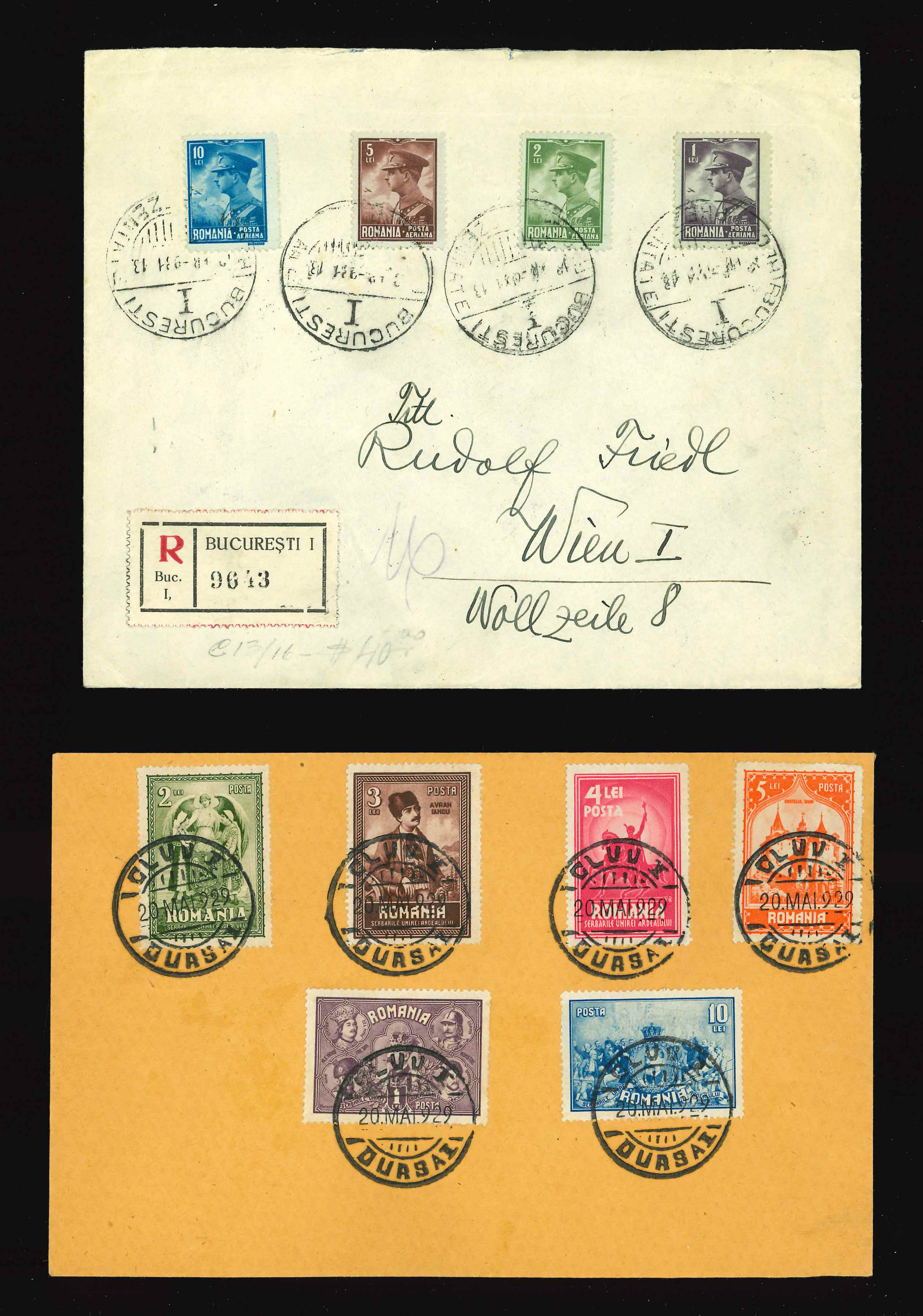 1930 cover bearing the King Carol II imperforated set on local registered express cover addressed to Wilhelm 'Willy' Nathansohn, a famous interwar stamp dealer in Bucharest. Small faults, but a rare cover. (Image 1)