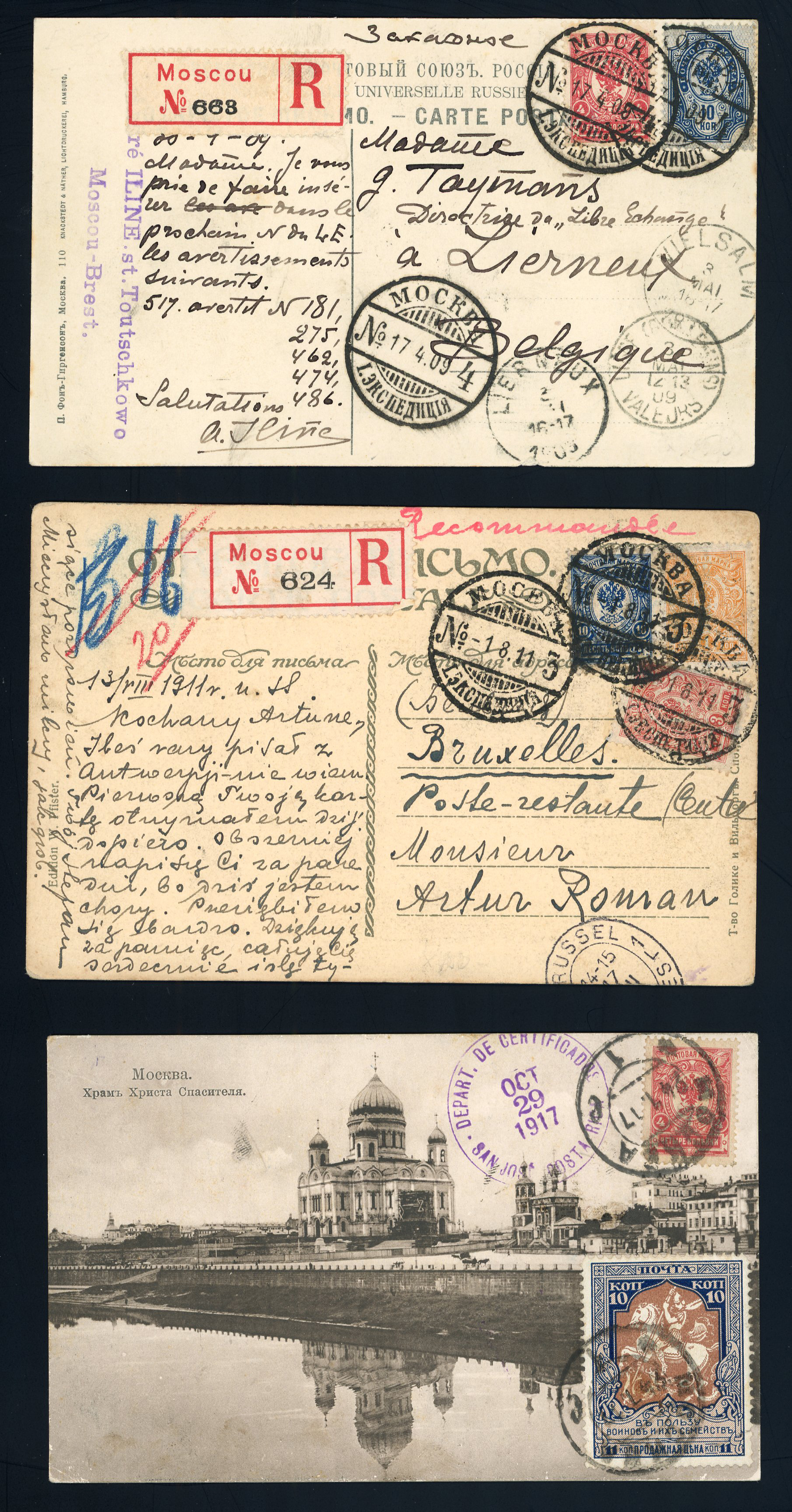 Registered Mail: Group of three registered picture postcards, all from Moscow, two to Belgium and one to San Jose, Costa Rica with arrival cancel on front. (Image 1)