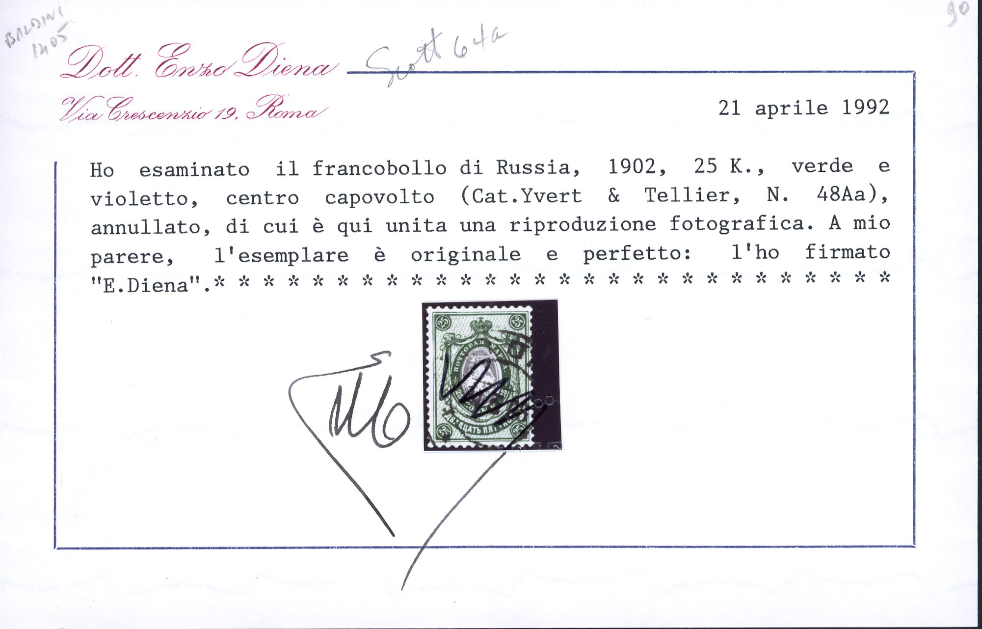 1902-05 vertically laid paper with inverted centre fresh used on 24 3 06, fine and very rare, E. Diena Cert (1992) and G Buhler Cert (1986) (Image