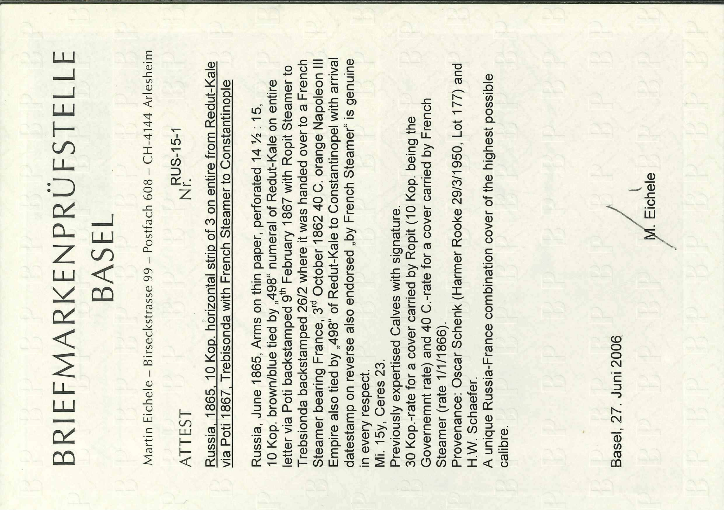 A unique mixed franking of France and Russia on cover carried through the Ropit Line, active between the offices of the Russian Levant.