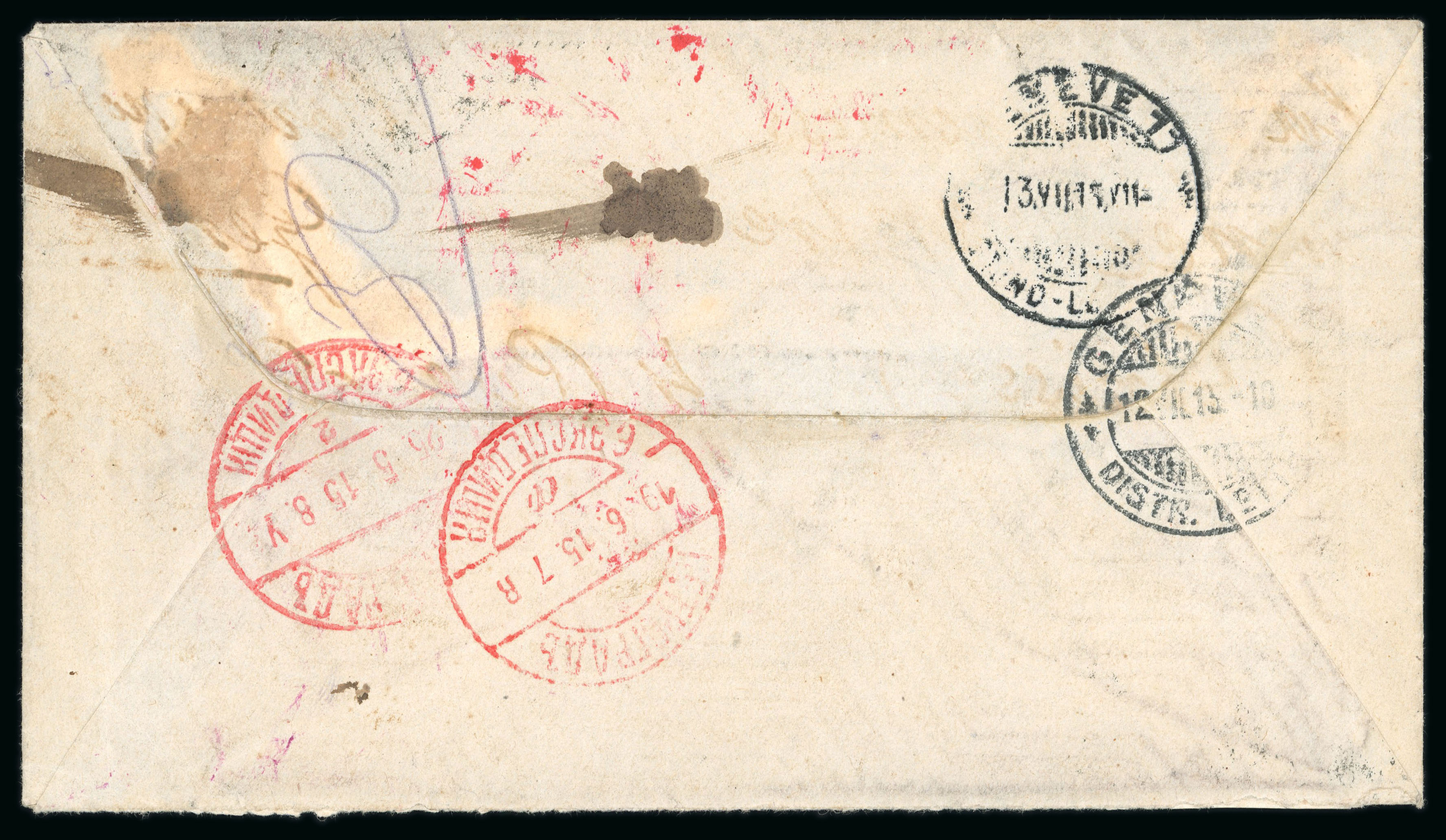 1871 (3.9.) 10k. postal stationery envelope from Tambov to Gagra with fine strike of Sukhun-Kale transit, returned with further Sukhun-Kale cds and final return Tambov cds, small fault at top of envelope not unduly detracting from a rare