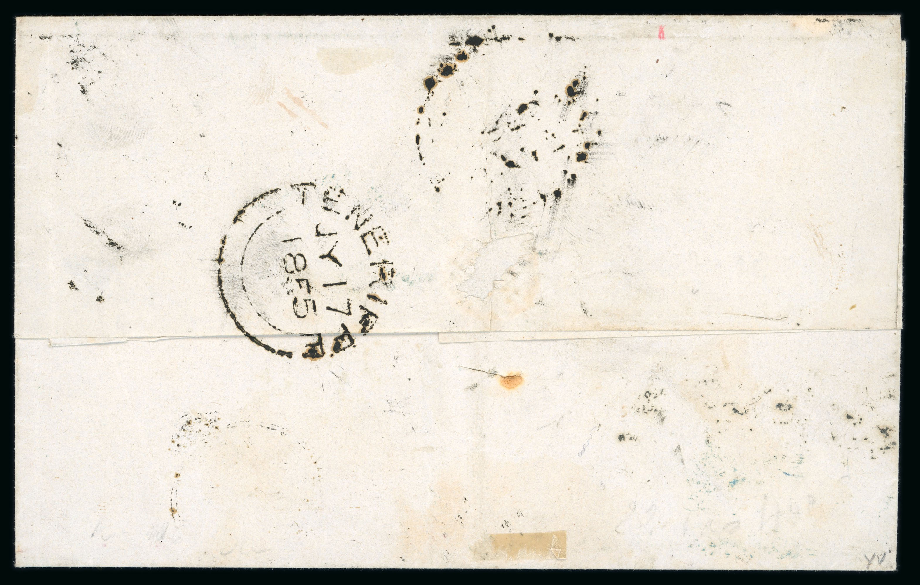 two Valsevo cds and straight-line registered, the entire has been refolded, two vertical fining crease, a rare multiple on cover (Image 1)