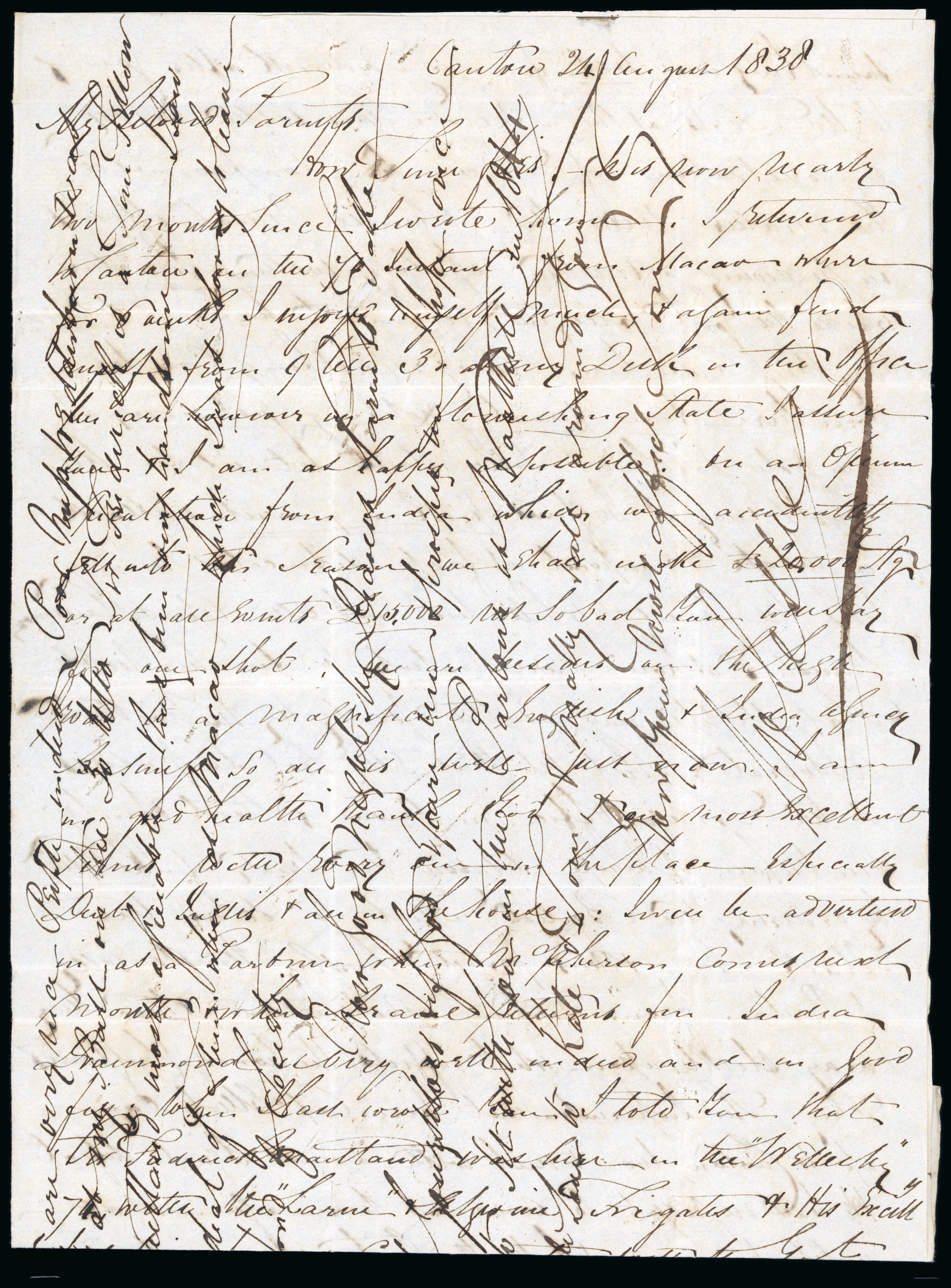 ship letter postmarks, transit markings and manuscript postal charges. A fascinating correspondence about the early commercial scene in China and the factories in Canton in the period leading up to the Opium Wars. . (Image 1)