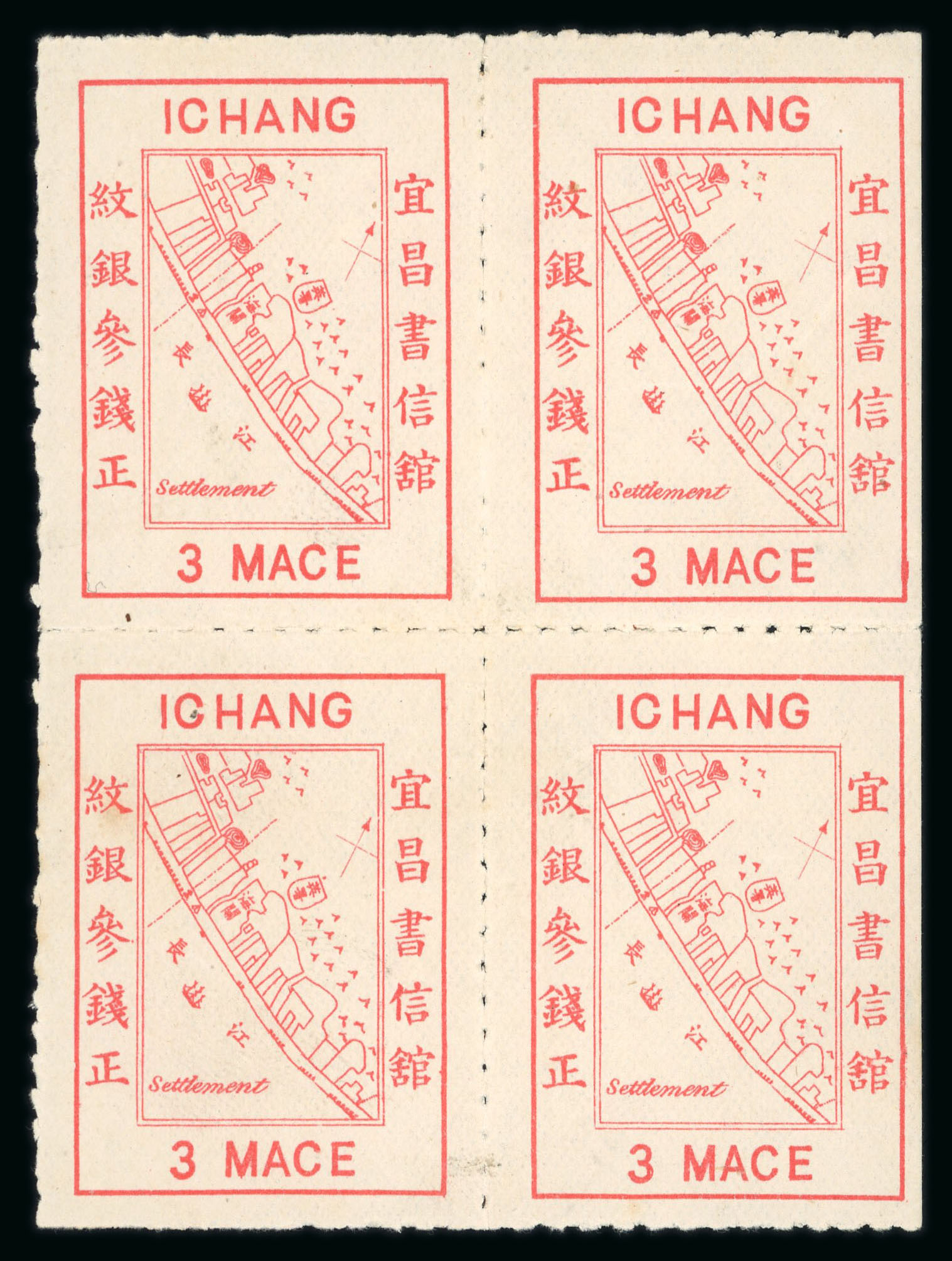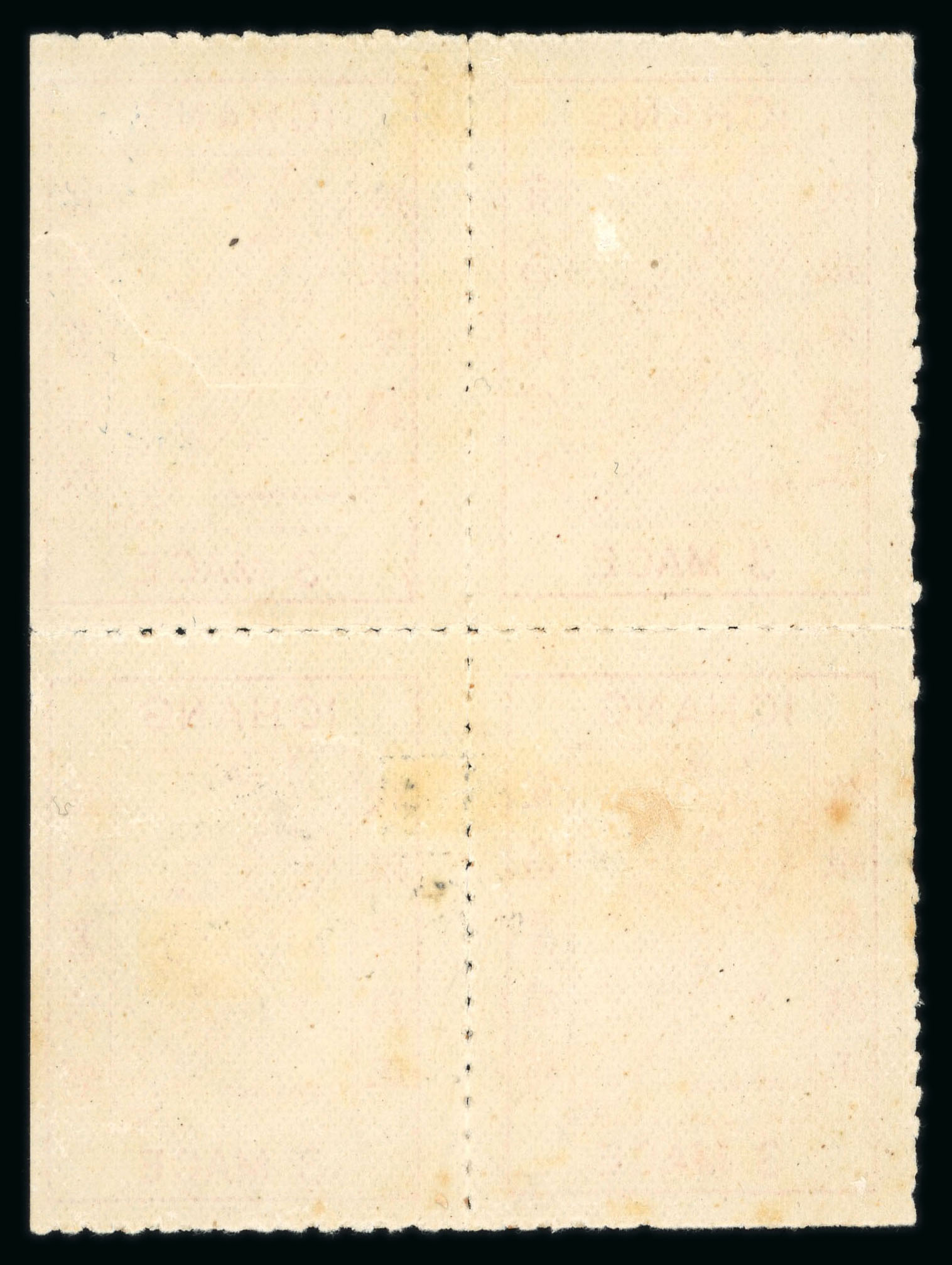 Shanghai 1876 3c carmine on white paper in complete sheet of 25 in very fresh condition, showing two small plate varieties, pos 14 retouch and pès 22 IPO for LPO, two parts of selvedge missing at base and others at base reinforced, one