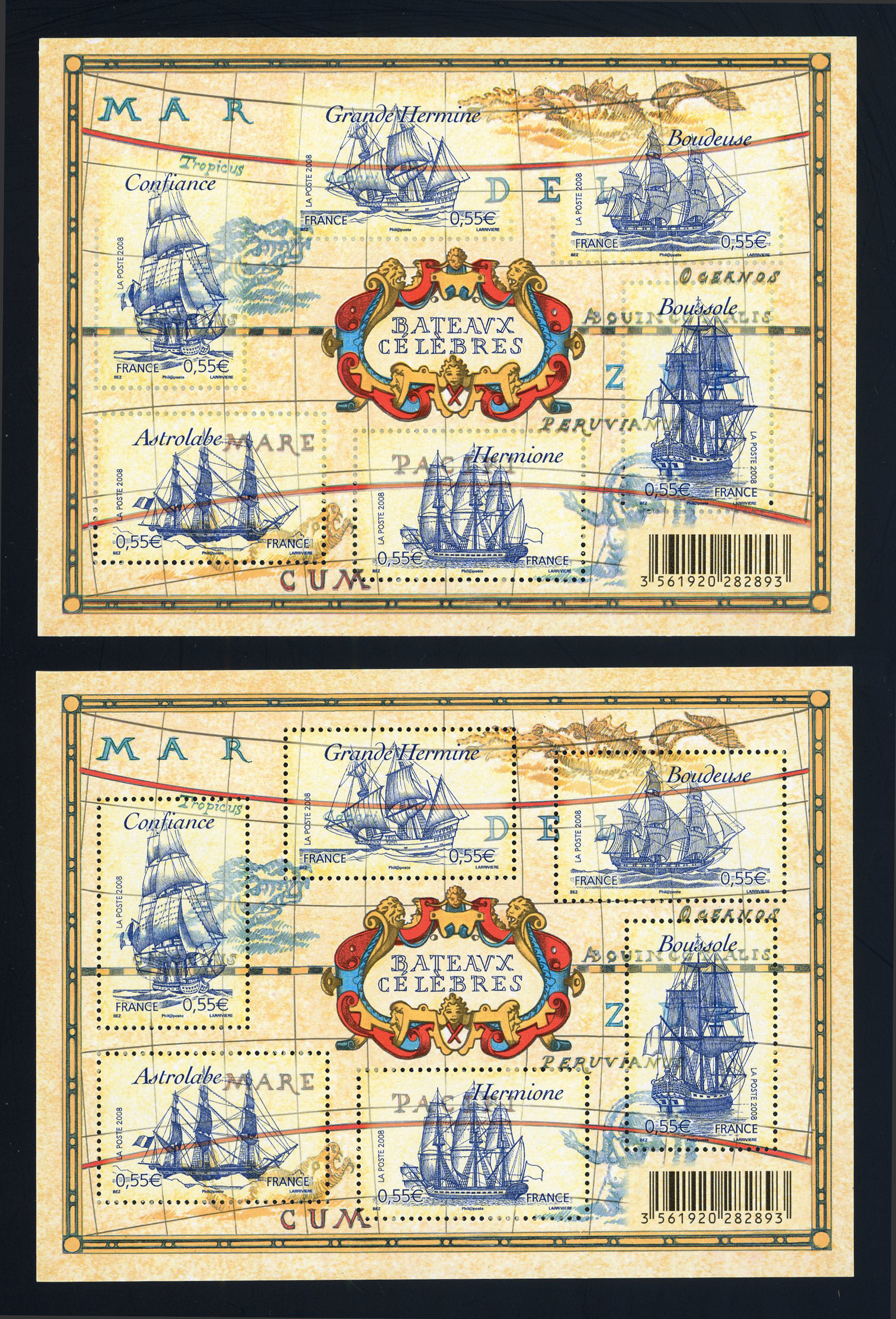 2008, bloc-feuillet voiliers Y&T n° 124 superbe variété dentelure incomplète et absente sur les trois timbres supérieurs, spectaculaire et non répertorié, TB et signé Scheller. (Image 1)