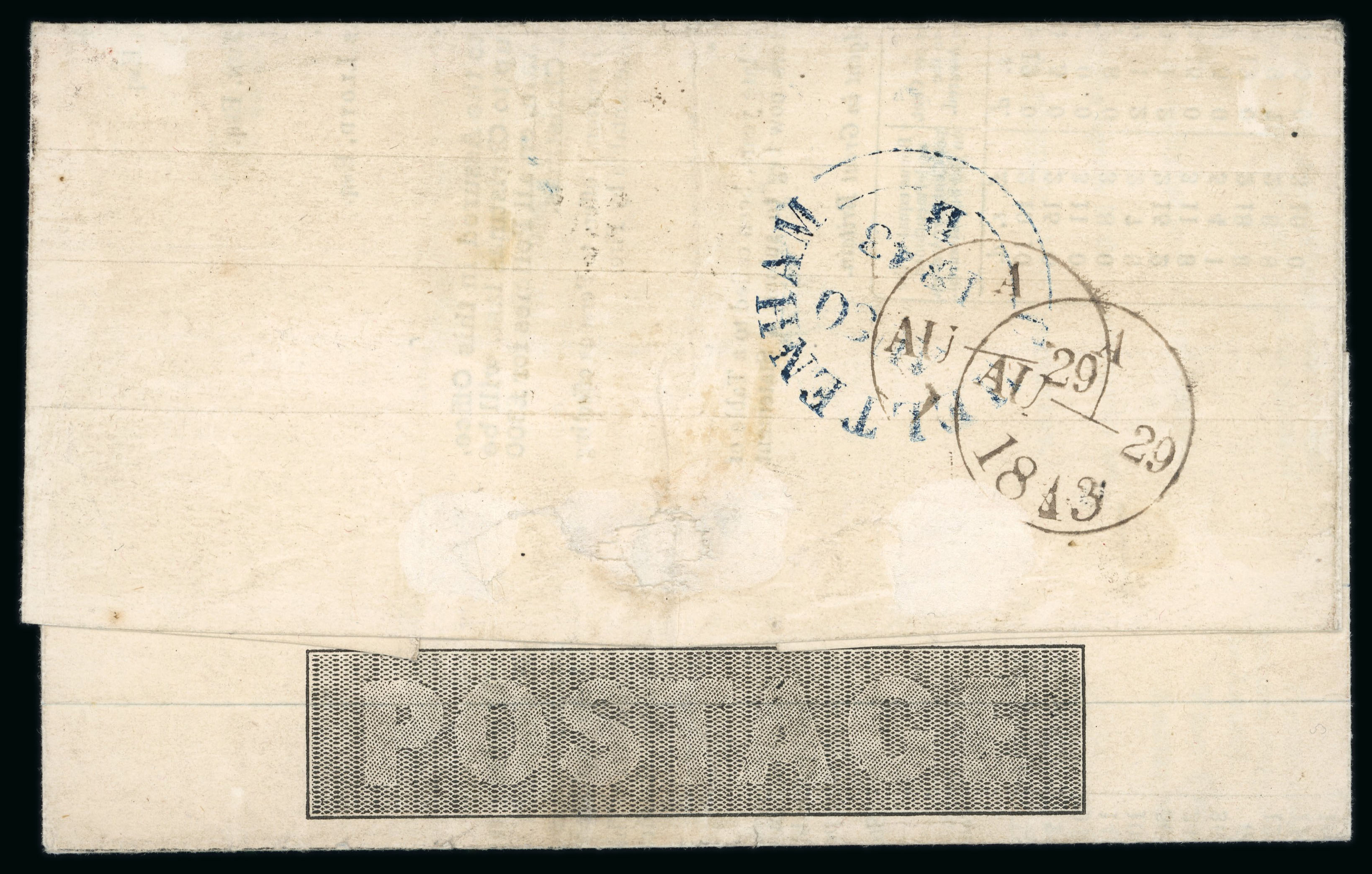 endorsed in manuscript, "Specimen of Postage Stamps as proposed by Mr C.W. 6 Years Previously to Mr R Hill./ With Mr C Whiting's compliments" a fine and very rare cover. In The hand of Charles Whiting. (Image 1)