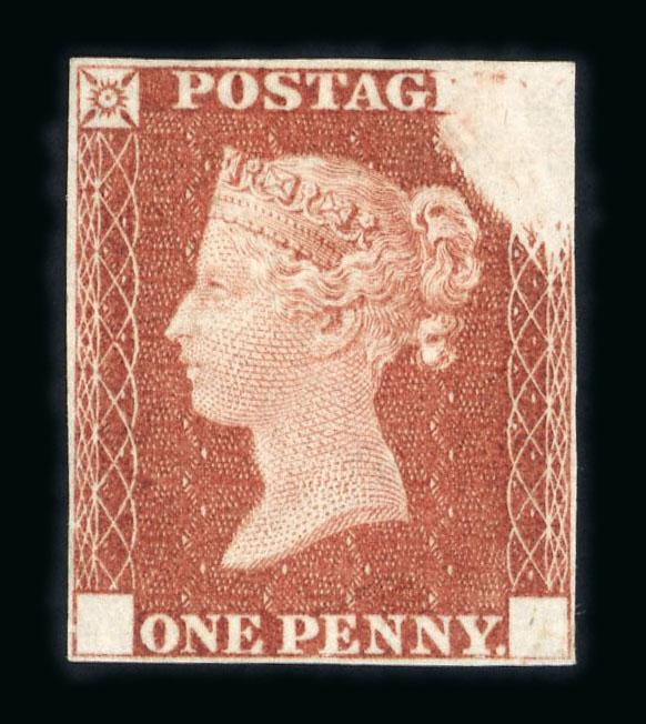 1840 Rainbow Colour Trial 1d in red-brown with void corners on thin white wove unwatermarked paper with 4 close but clear margins mint, part o.g., a fine example. (Image 1)
