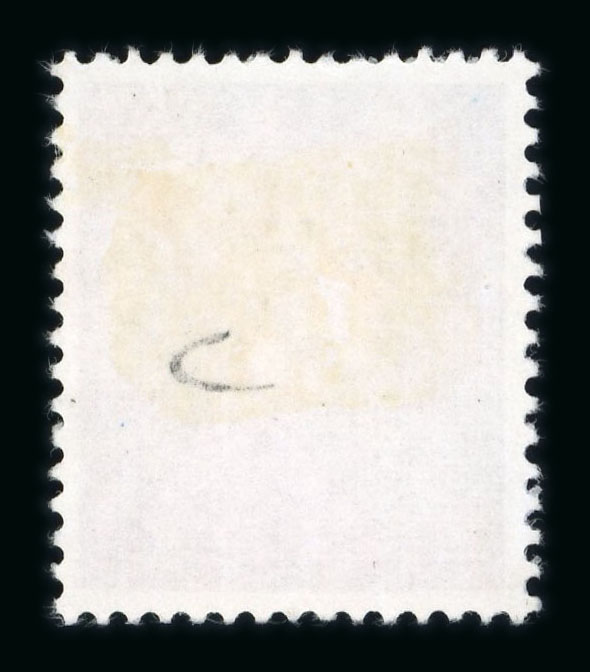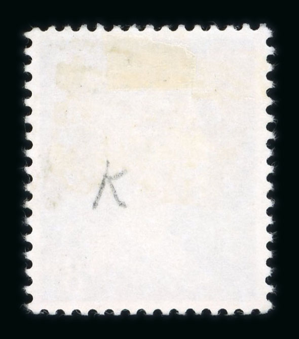 - 1s in pale light emerald, adopted colour for the 12 1/2p, pencil "O" annotation on reverse, tear at top left, only three examples thought to exist.