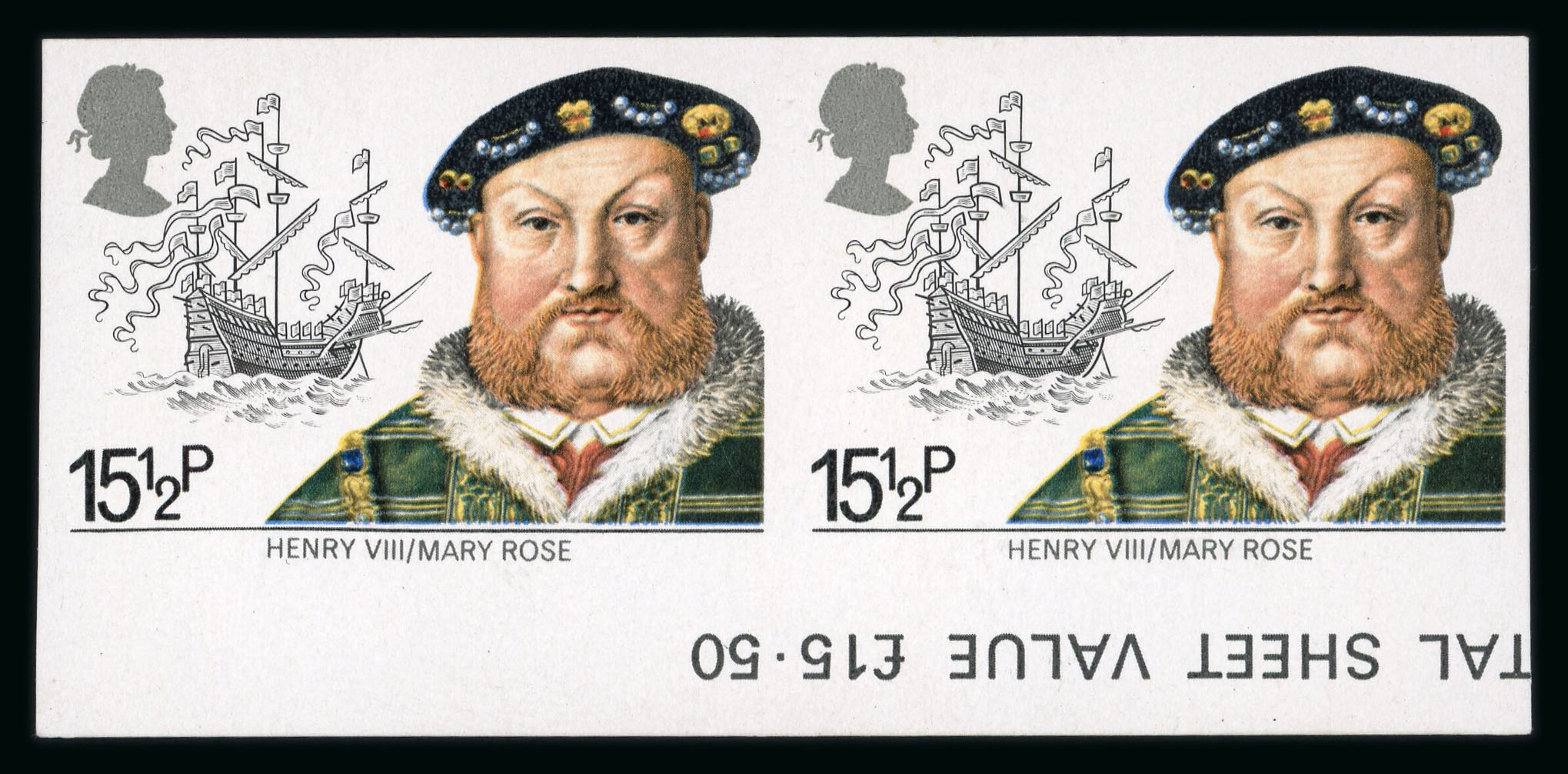 1982 Maritime Heritage 15½p. imperf. pair with part inscription at foot, fine mint NH. Very rare with around five pairs known. (Image 1)